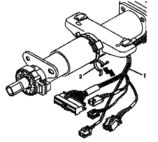 3. Remove the wire harness straps (2) from the tilt head assembly (1) and the column.