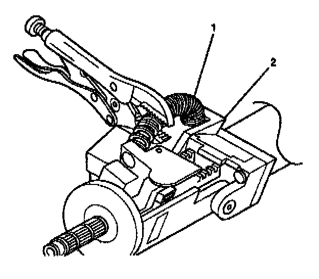 Caution: The tilt spring and the spring guide are under pressure. The tilt spring and the spring guide may become a projectile. Secure the spring with locking pliers during removal. Secure the spring with locking pliers during installation. Bodily Injury may result during removal and Installation of the tilt spring and the spring guide. Always use caution during removal and Installation of the spring and the spring guide.