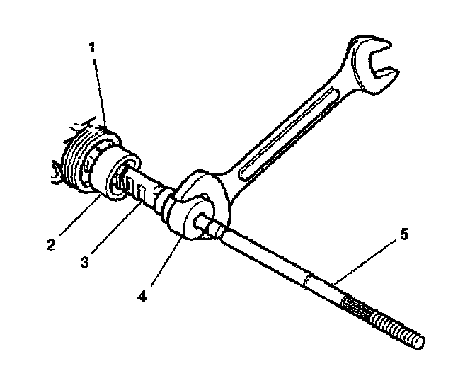 6. Remove the inner tie rod (5) from the rack assembly (1) as follows: