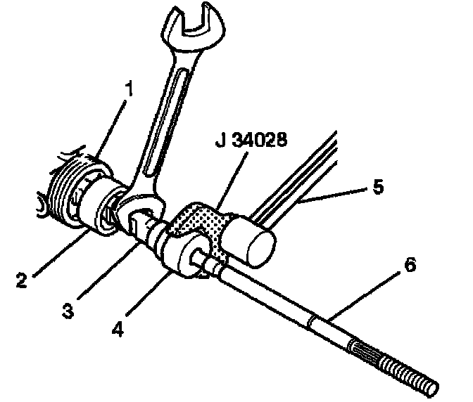 3. Install a torque wrench to the J 34028 to tighten the inner tie rod.