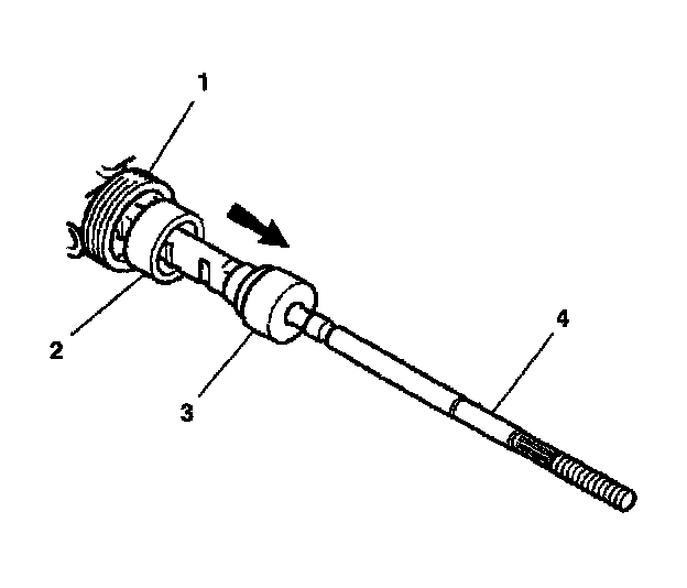 2. Install the inner tie rod (3) to the rack and pinion (1).