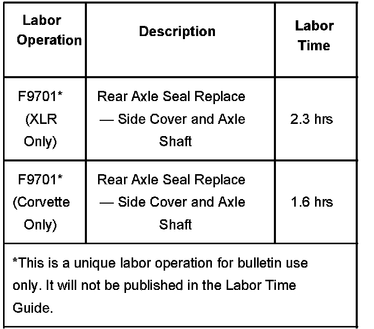 Verify that the fluid leak is rear axle fluid, not transmission fluid. Replace the left differential side cover 0-ring and left axle shaft seal. Engineering has recommended that sealant be applied to the side cover prior to installation. Use the appropriate service procedure and part numbers listed below.