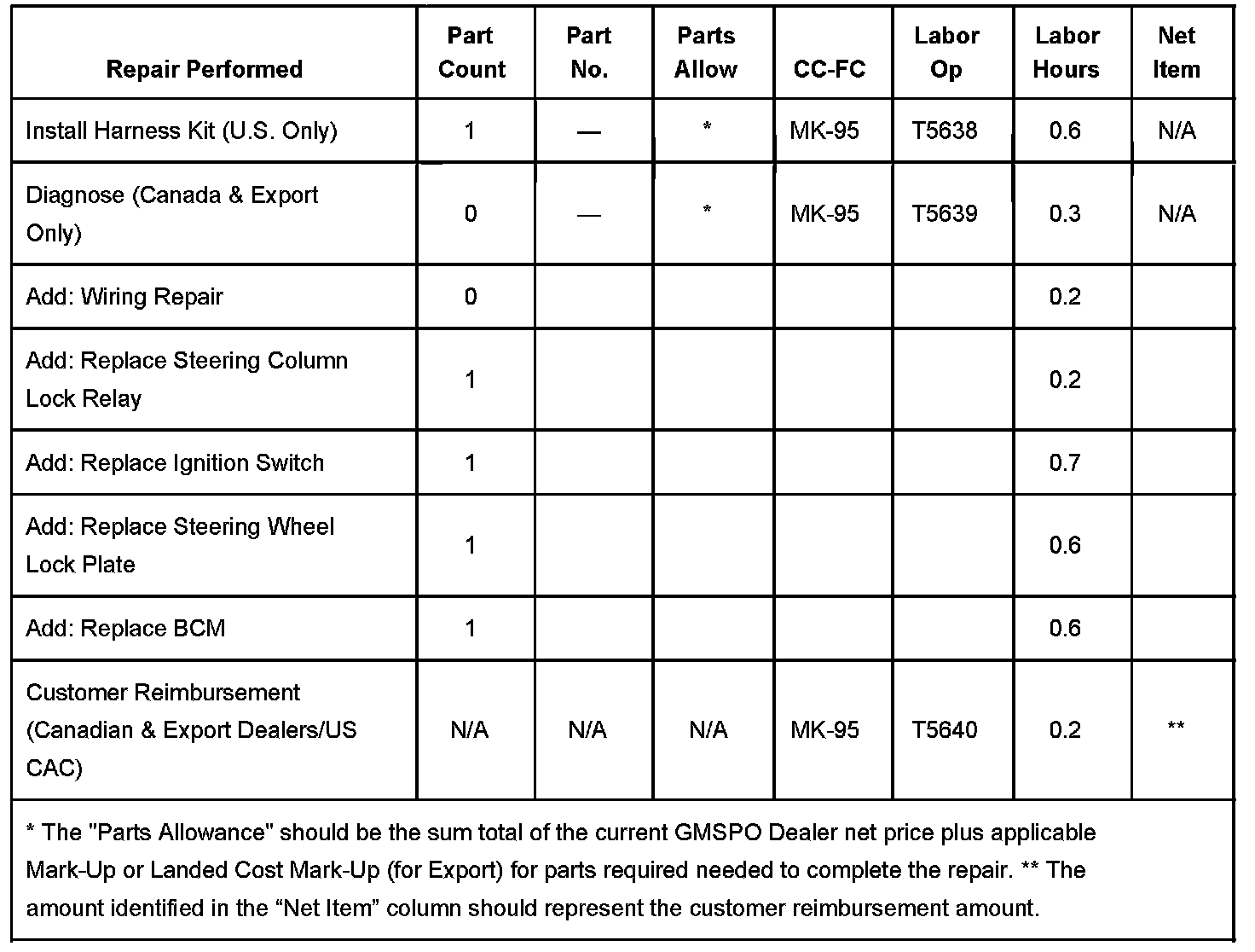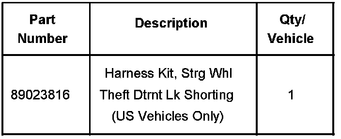 For Canada & IPC: Parts required to complete this special policy will be determined as you go through the diagnostic table. When it is determined which part(s) will be required, they are to be obtained from General Motors Service Parts Operation (GMSPO).