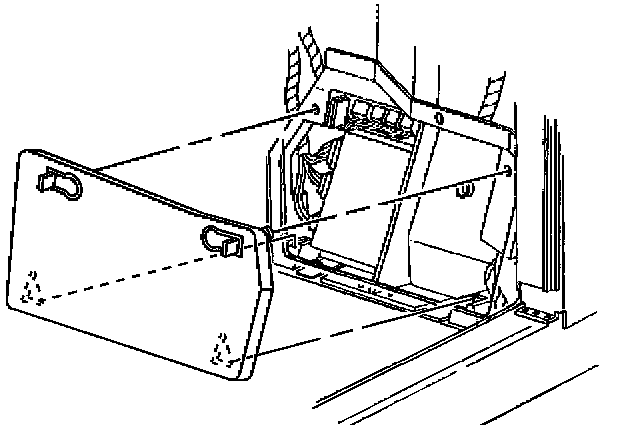 4. Disengage the upper latches on the front floor kick-up panel on the passenger side.