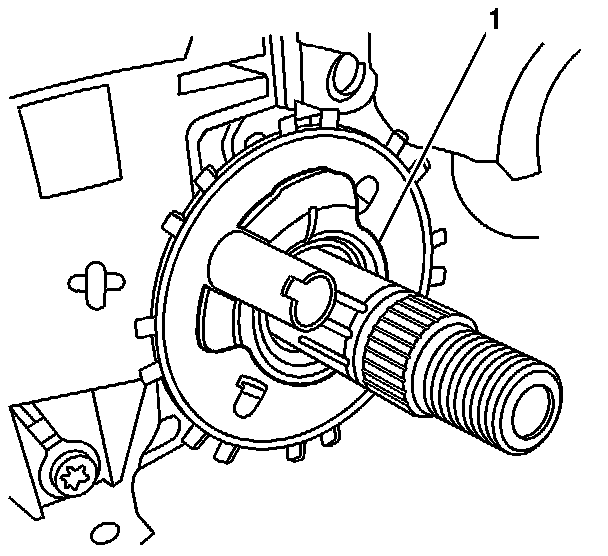27. Using J 23653-SIR (2), remove the retaining ring and the lock plate (1) and discard both.