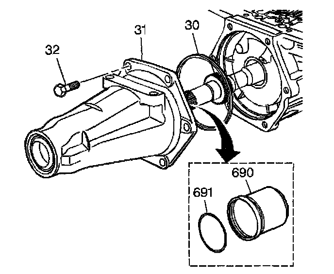 4. Remove the case extension (31) and the case extension to case seal (30).