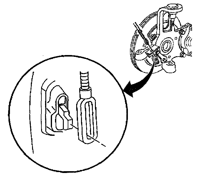 9. Install the parking brake cable into the bracket.