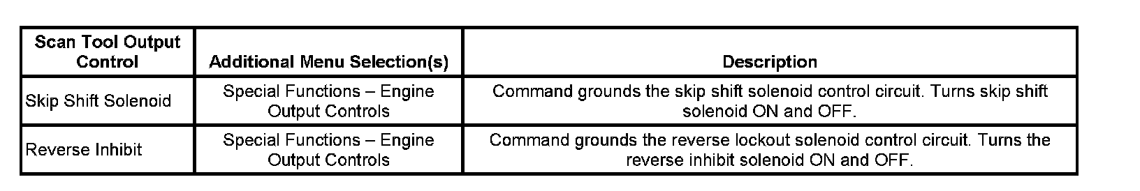Scan Tool Output Controls - Tremec 6-Speed