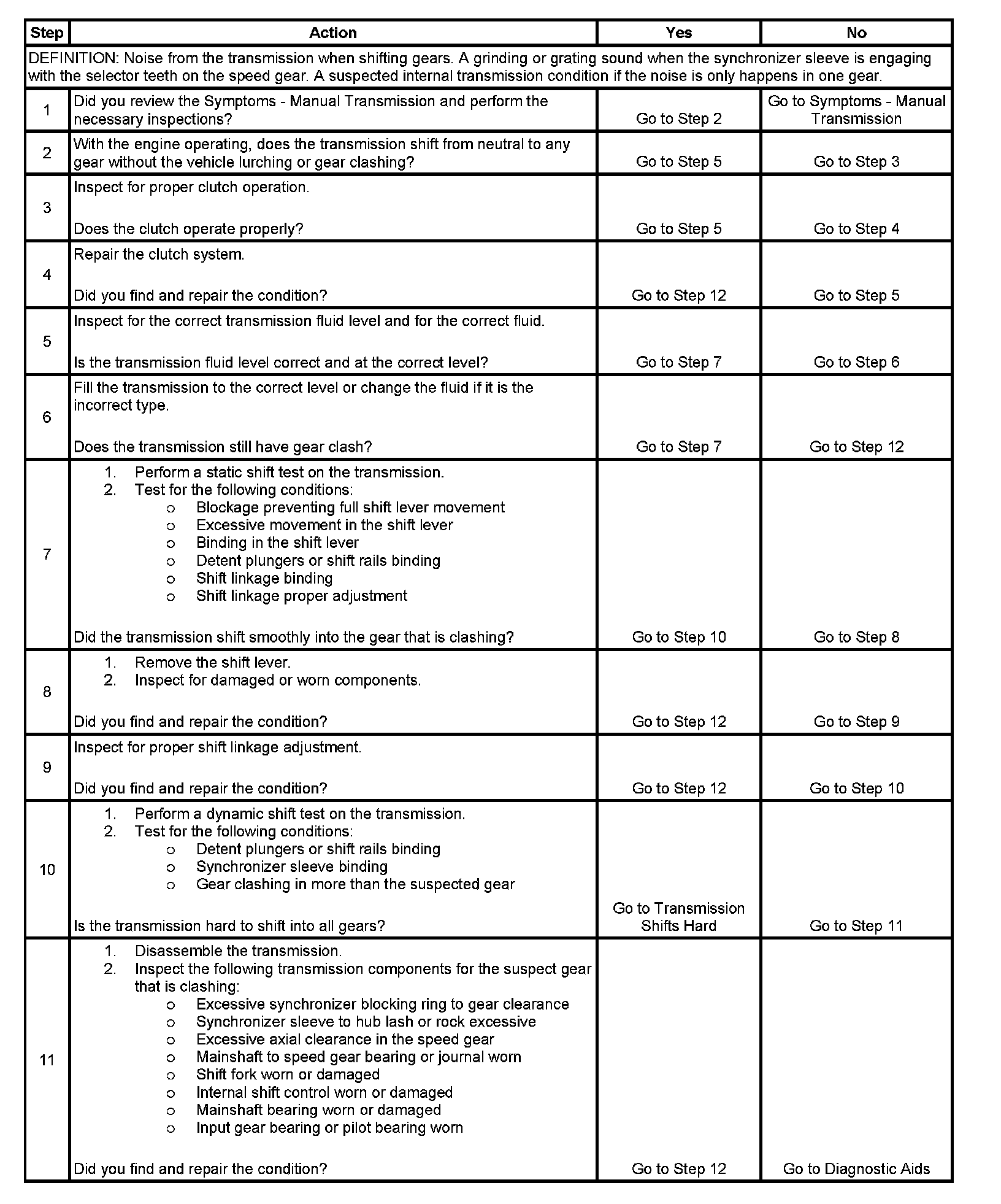 Transmission Gear Clash When Shifting GearsTest 1-11: