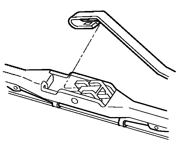 1. Install the hook of the wiper arm through the opening in the wiper blade.