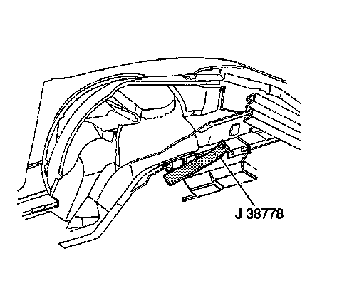 2. Use J 38778 to remove the push-in retainers holding the engine splash shield to the lower flange of the engine compartment side rail.