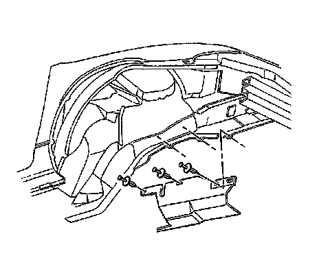 1. Install the engine splash shield to the lower flange of the engine compartment side rail.