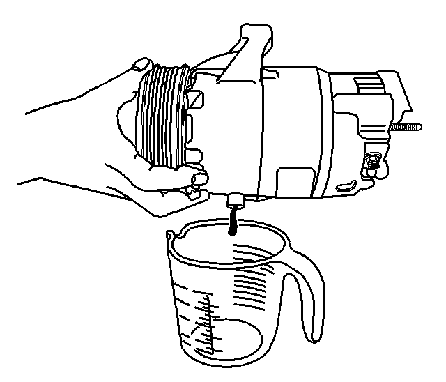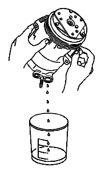 IMPORTANT: Drain and measure as much of the refrigerant oil as possible from the removed compressor.