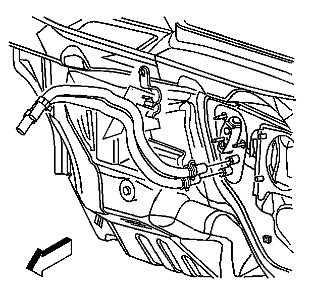 4. Use J 38185 in order to position aside the heater hose inlet and outlet clamp at the heater core.