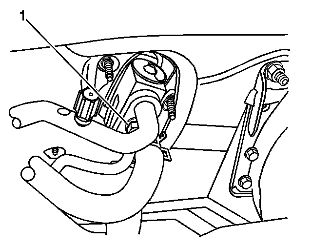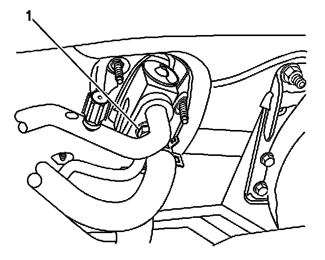 9. Install the bolt to the HVAC module assembly lower support (1).