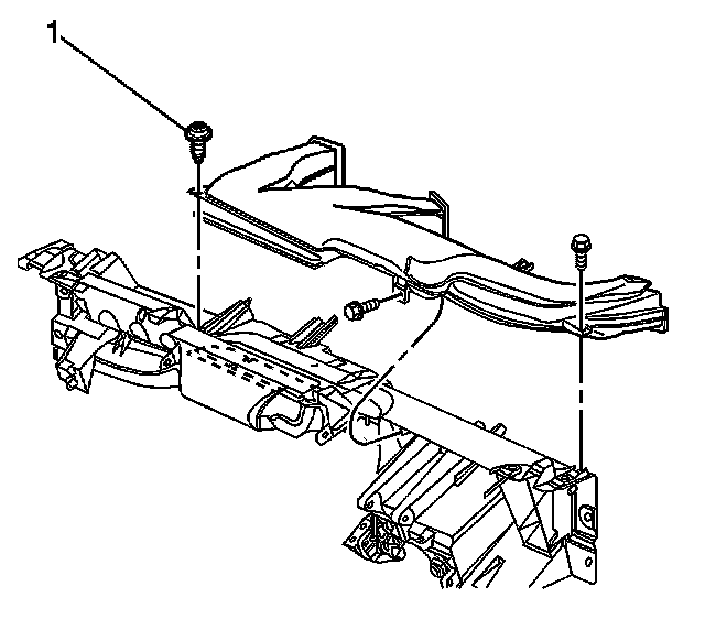 30. Remove the bolt (1) from the HVAC module assembly lower support.