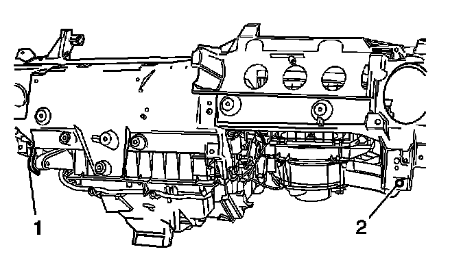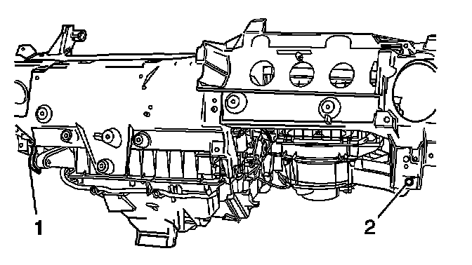 10. Install the bolt to the HVAC module assembly lower support (2).