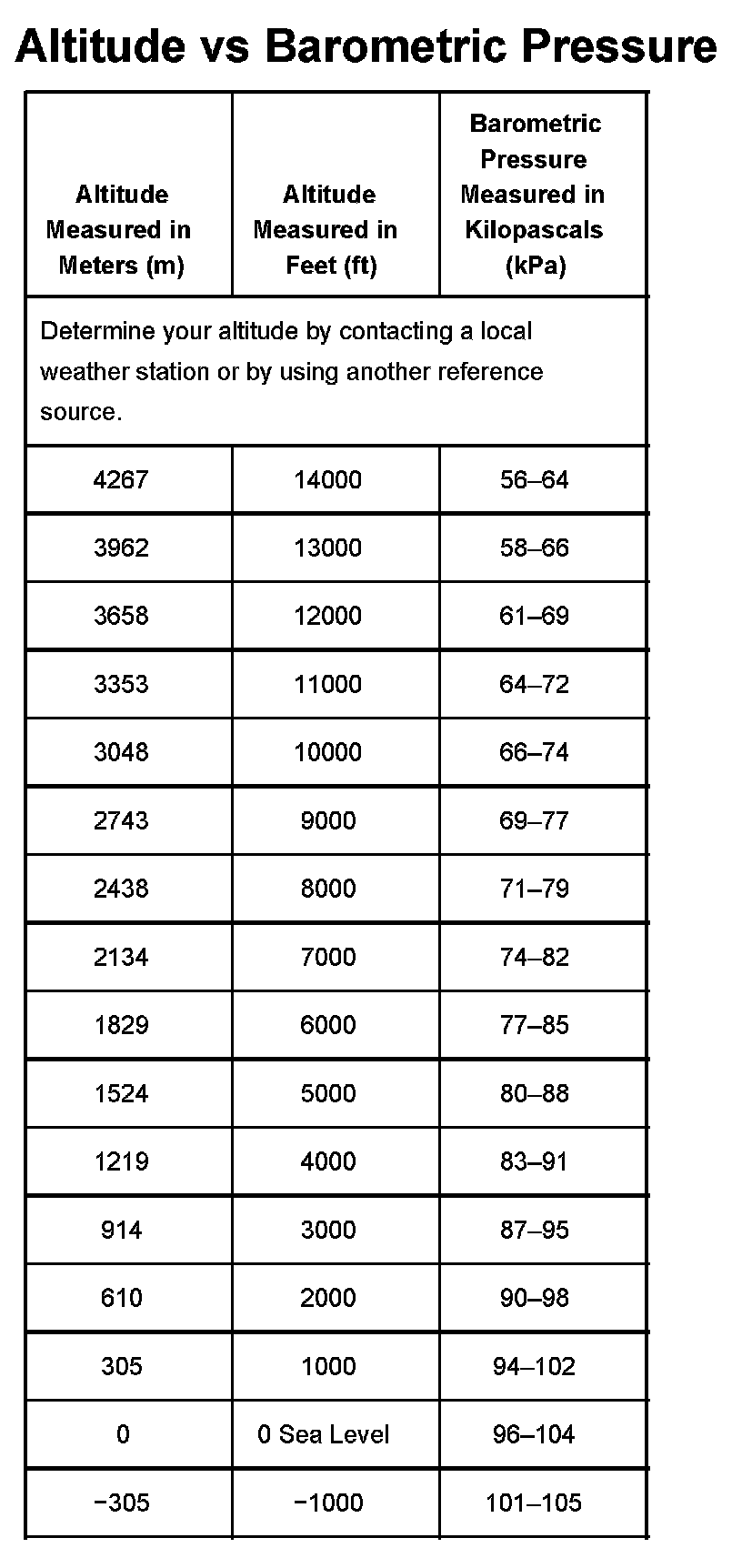 Pressure, Vacuum and Temperature Specifications