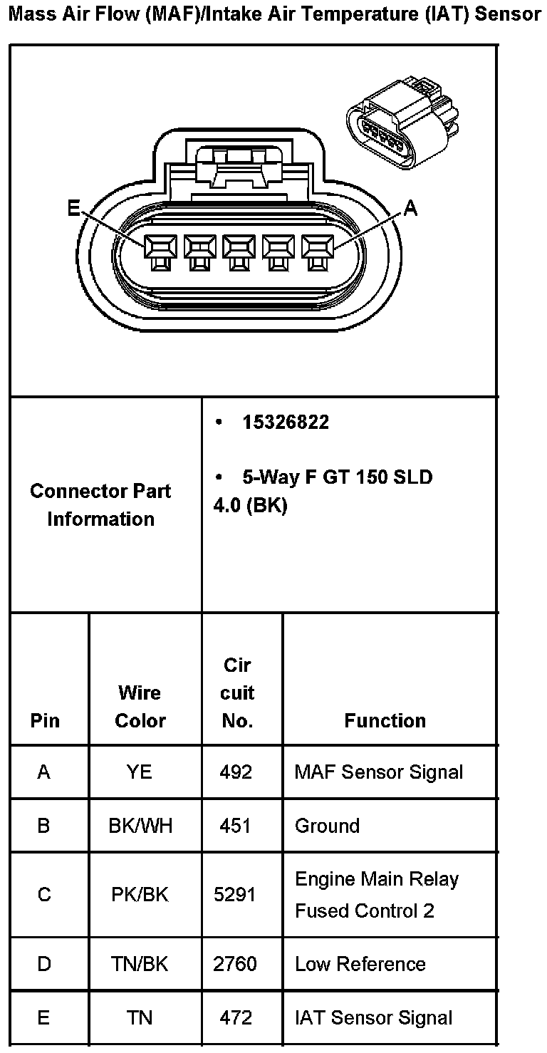 Mass Air Flow (MAF)/Intake Air Temperature (IAT) Sensor: