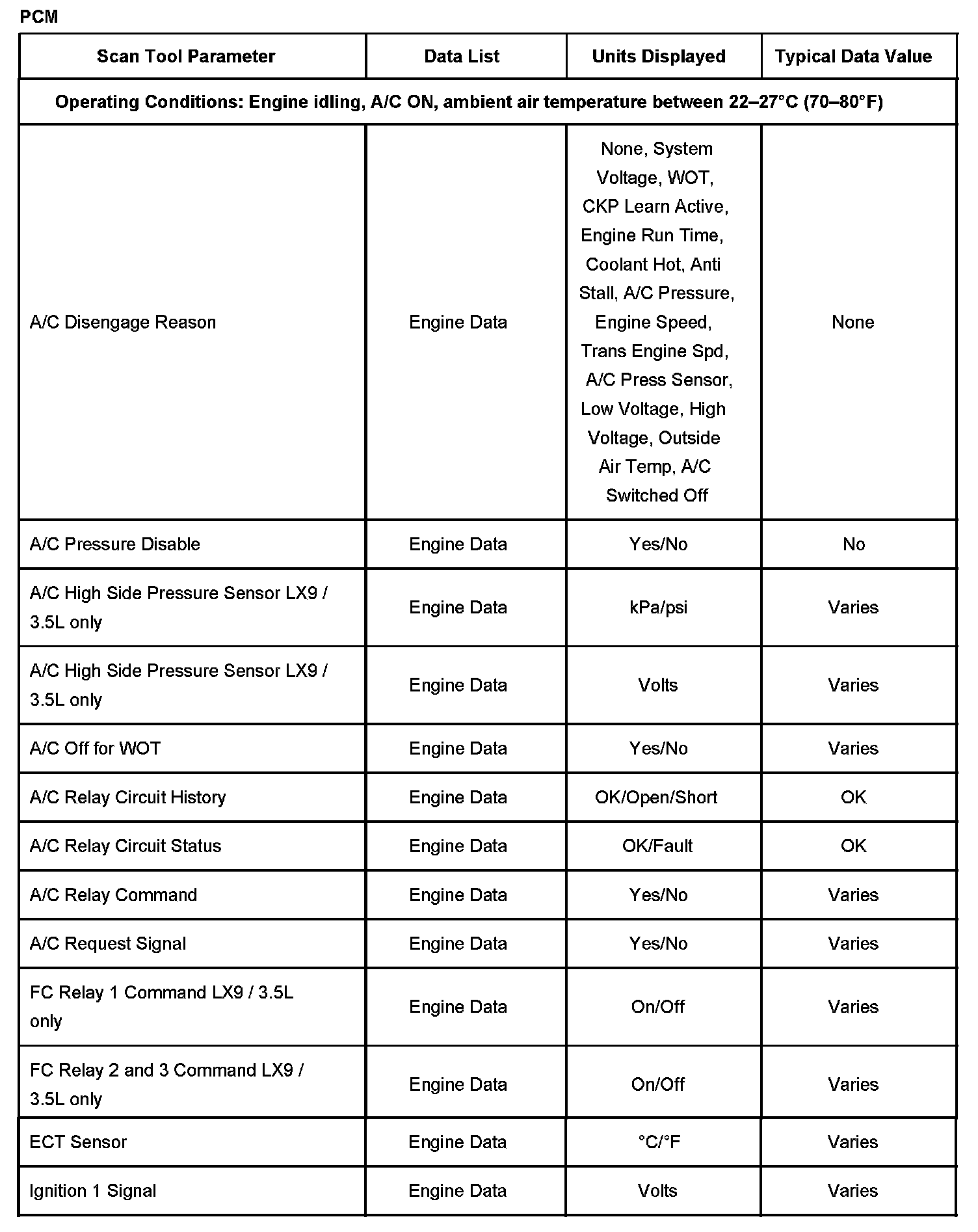 The scan tool data values were taken from a known good vehicle under the following conditions: