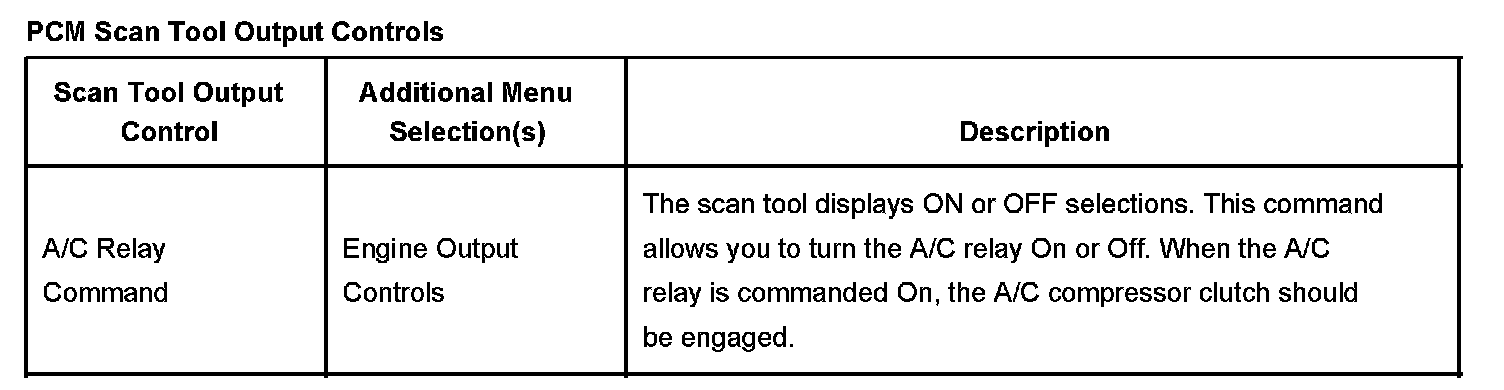 PCM Scan Tool Output Controls: