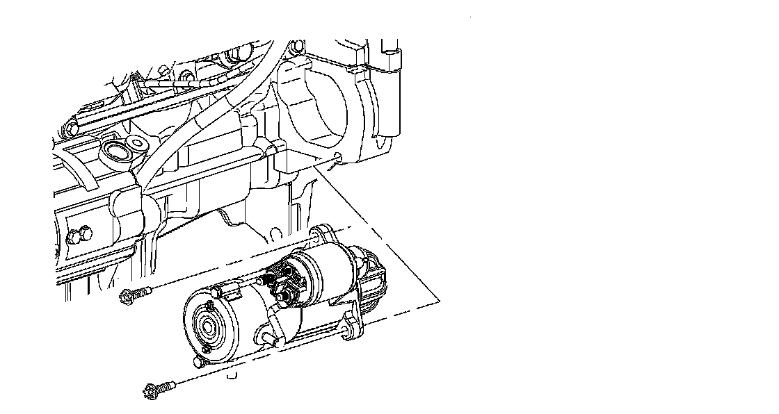 7. Remove the upper starter assembly to the engine block bolt.