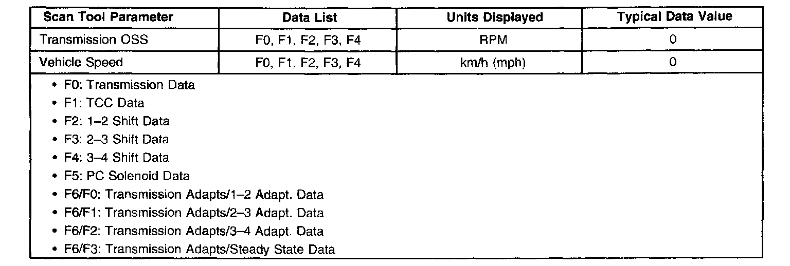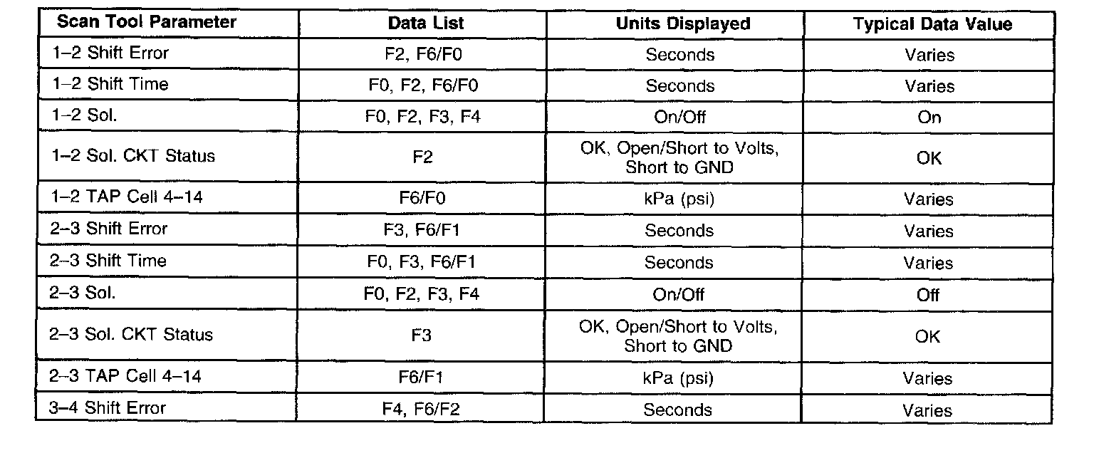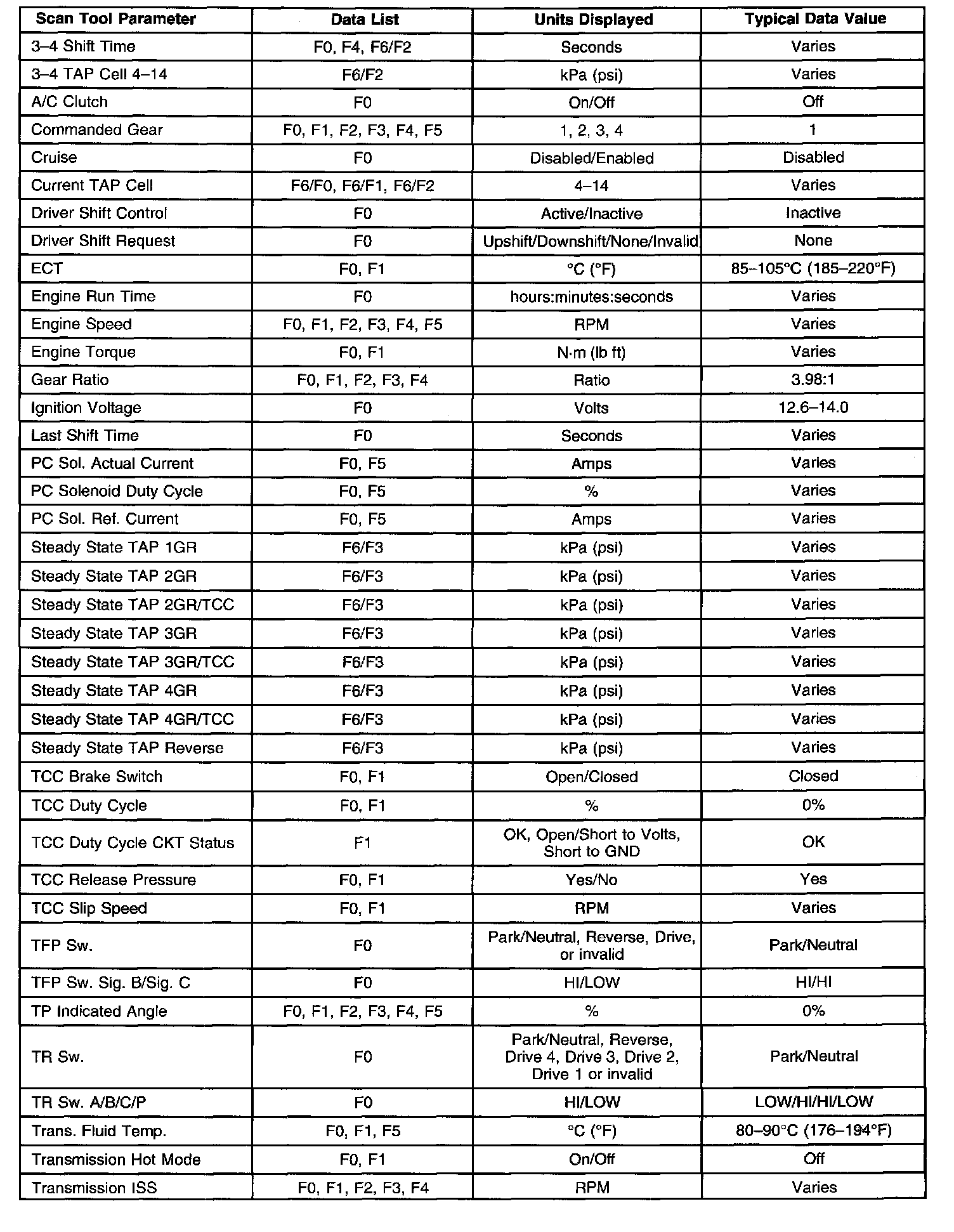 Transmission Scan Tool Data List (2.2L)Use the scan tool data values under the following conditions: