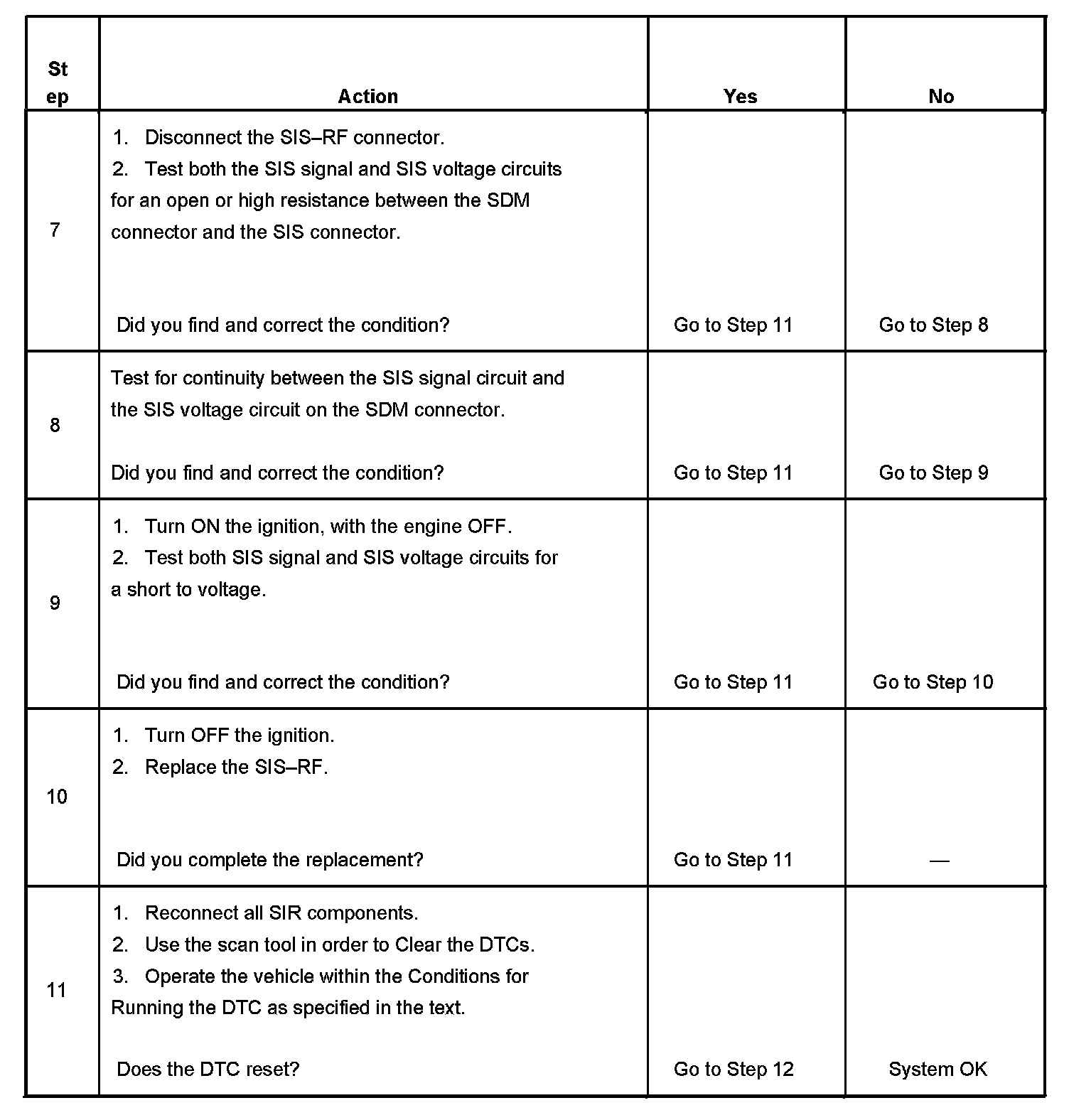 7. This step tests the SIS signal and SIS voltage circuits for an open or high resistance.