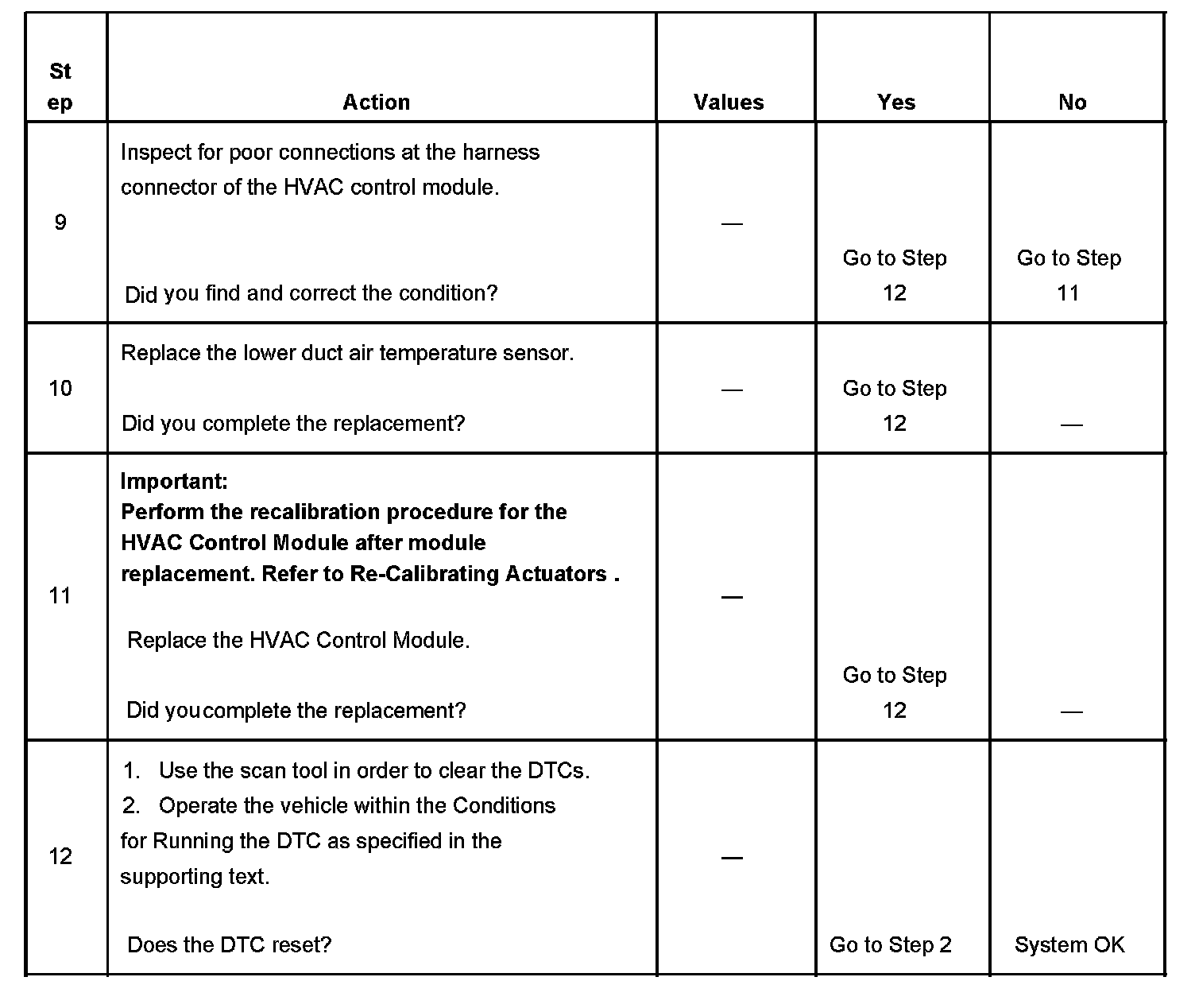 - The DTC will become history if the HVAC control module no longer detects a failure.