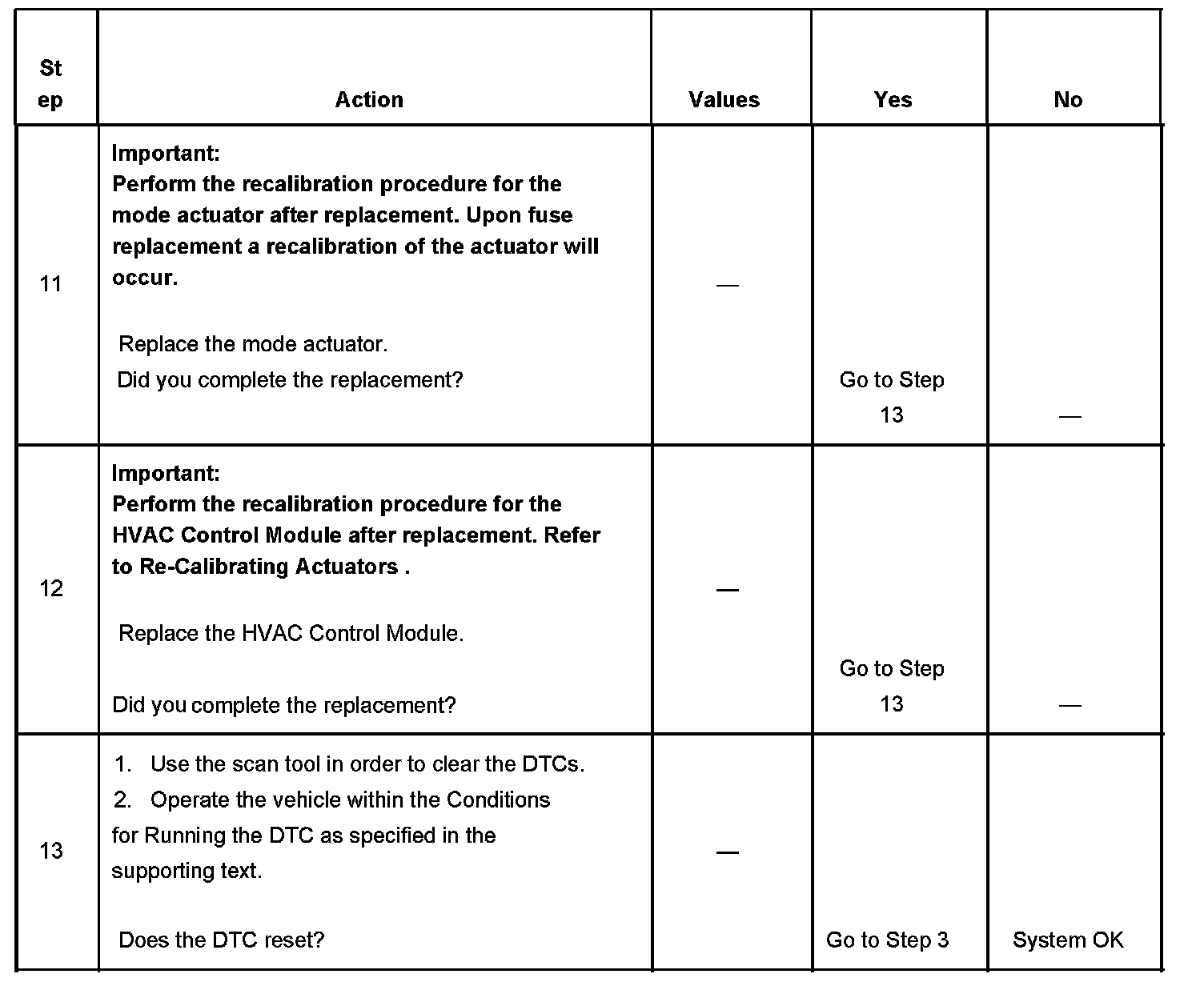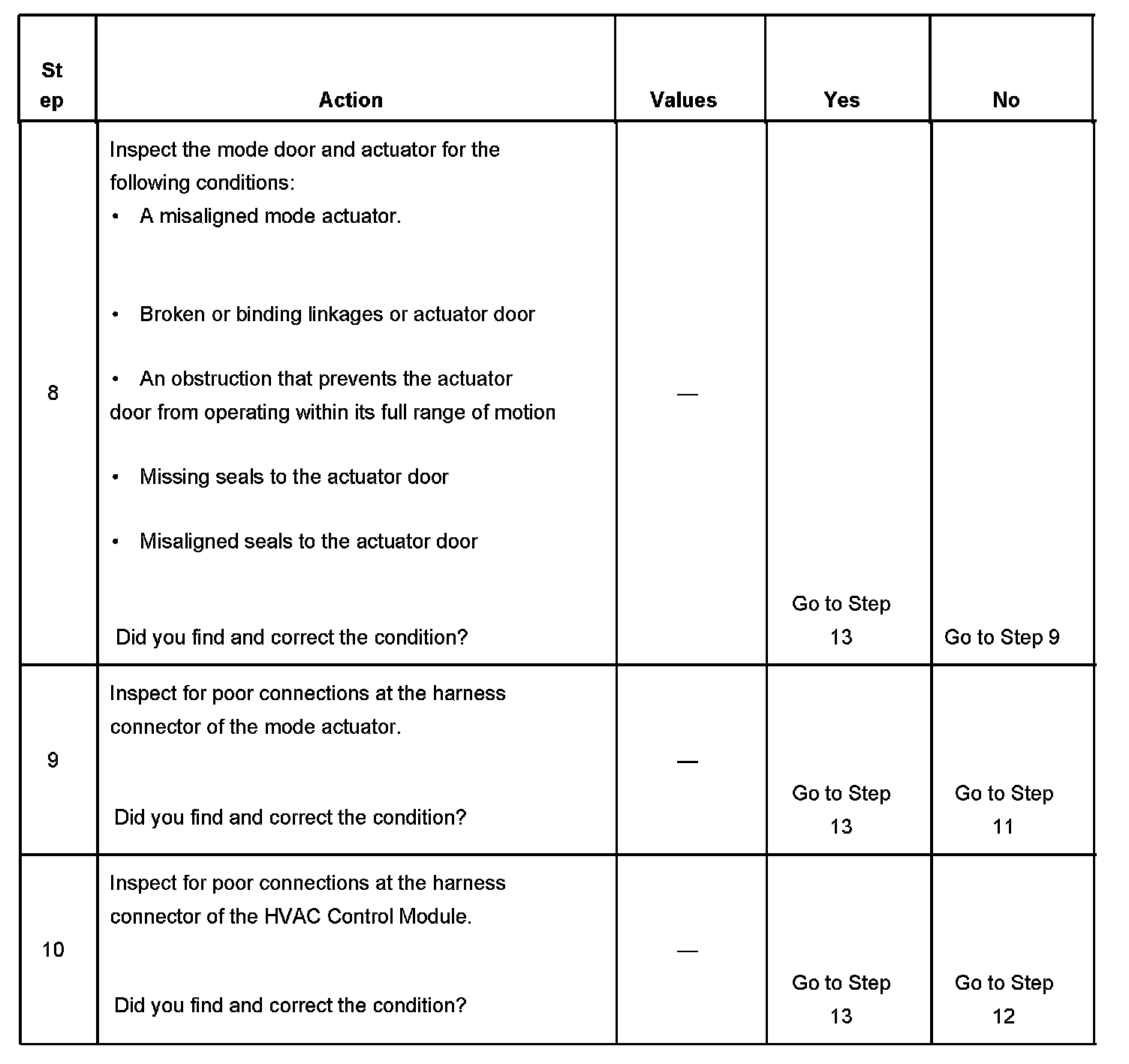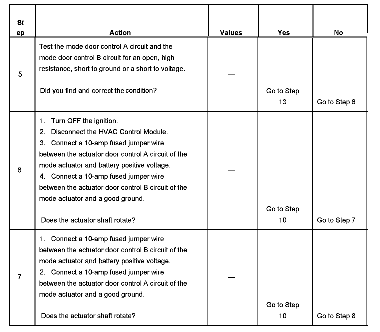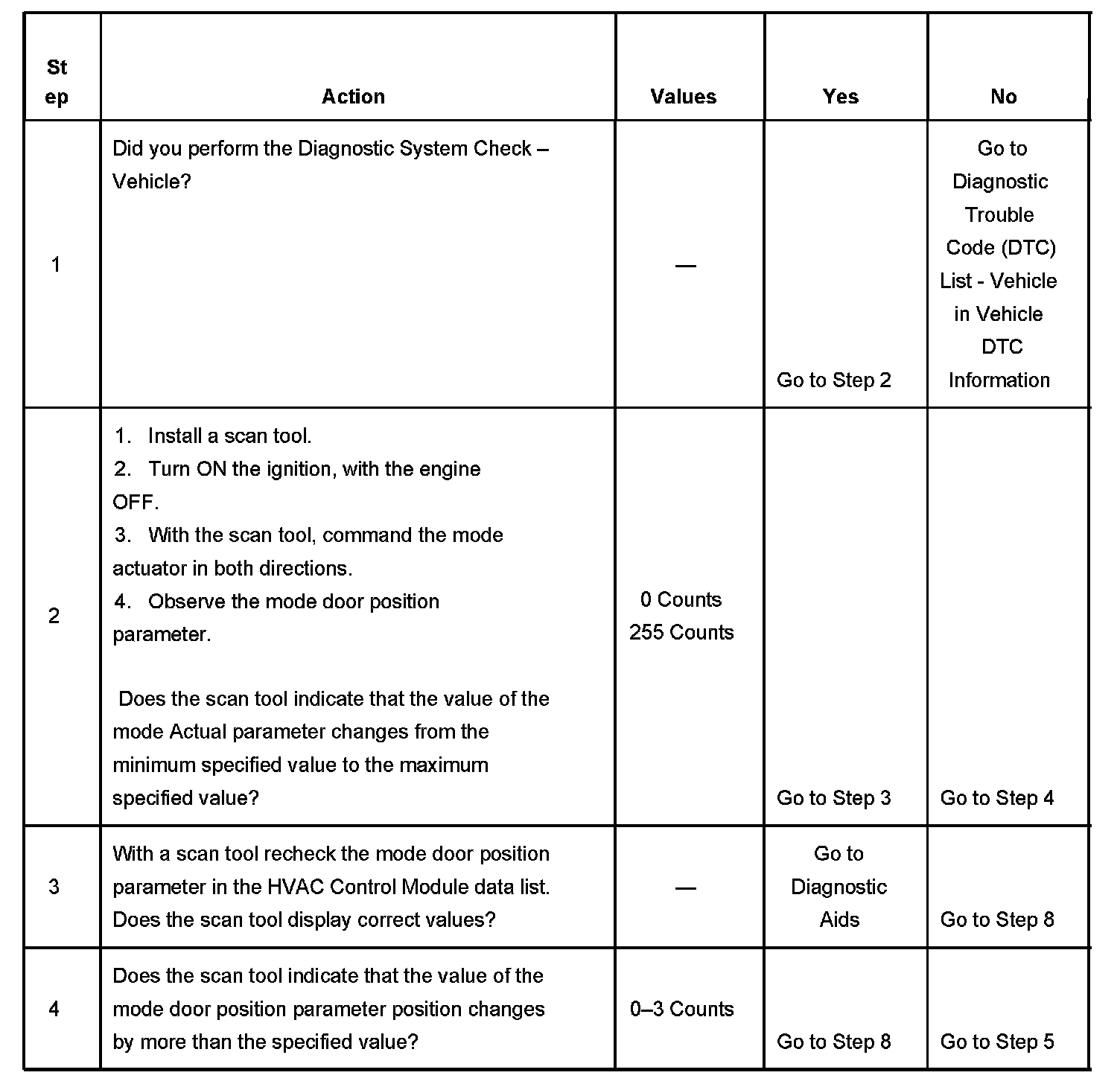 2. This step verifies that the HVAC Control Module is able to command the mode actuator through its full range of motion.