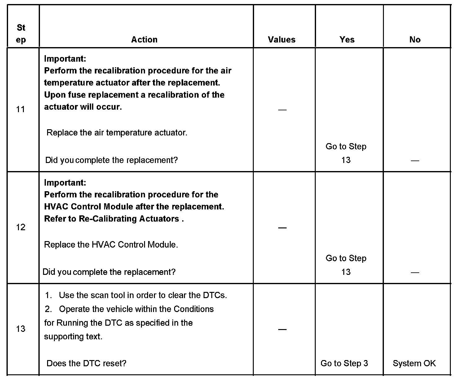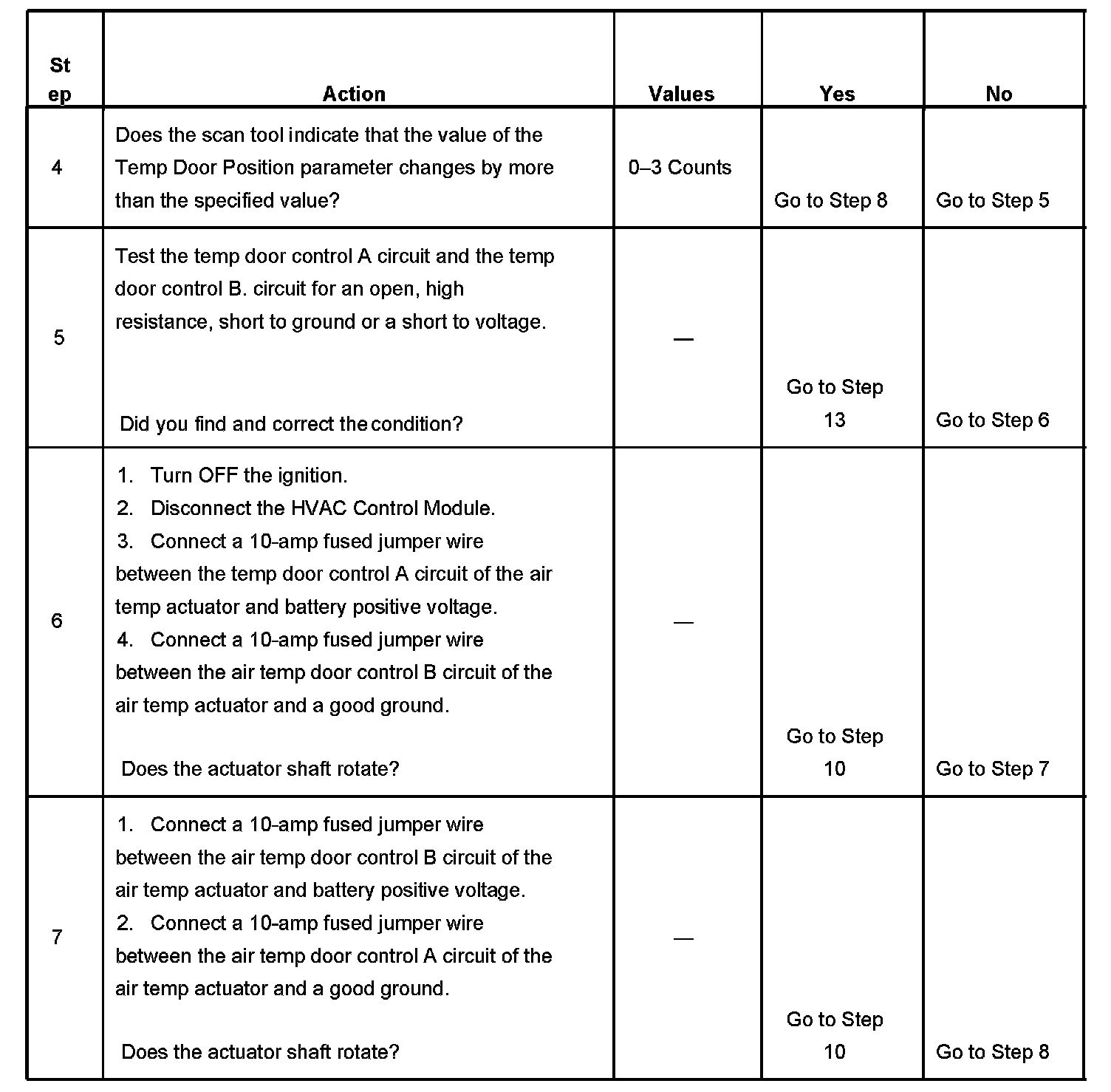 2. This step verifies that the HVAC Control Module is able to command the appropriate actuator through its full range of motion.