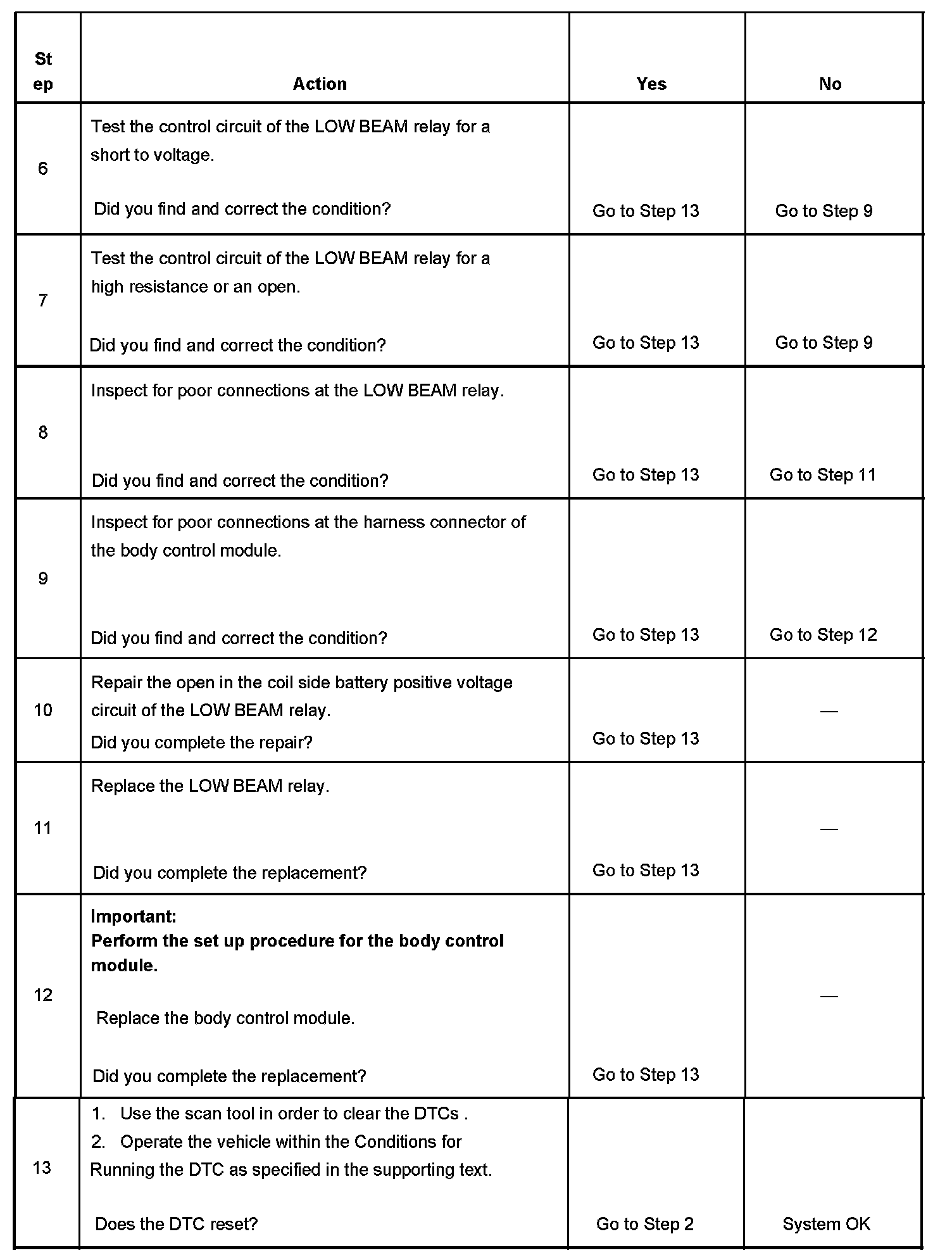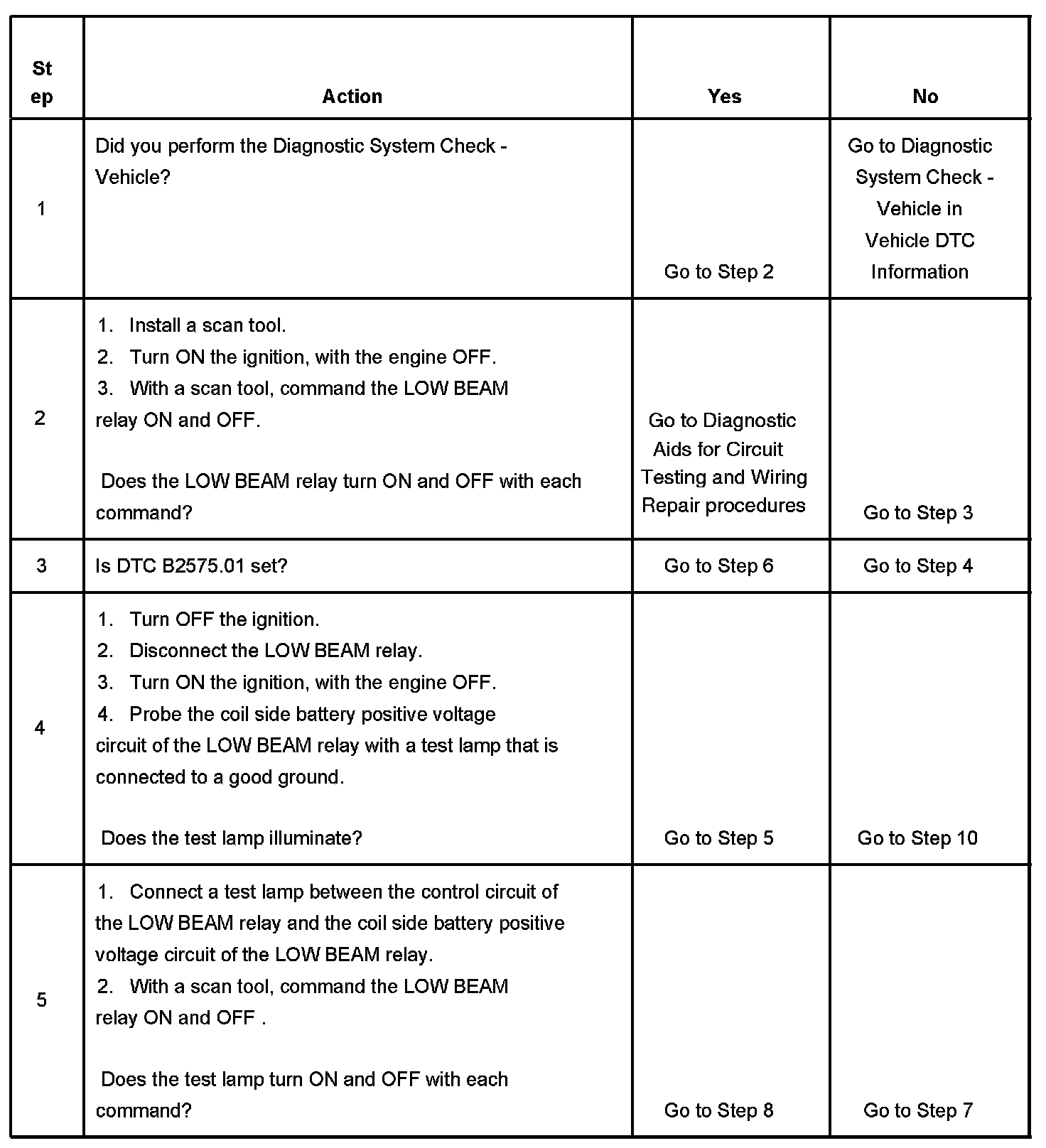- B2575-06 will set if there is an open or short to ground in the low beam relay control circuit.