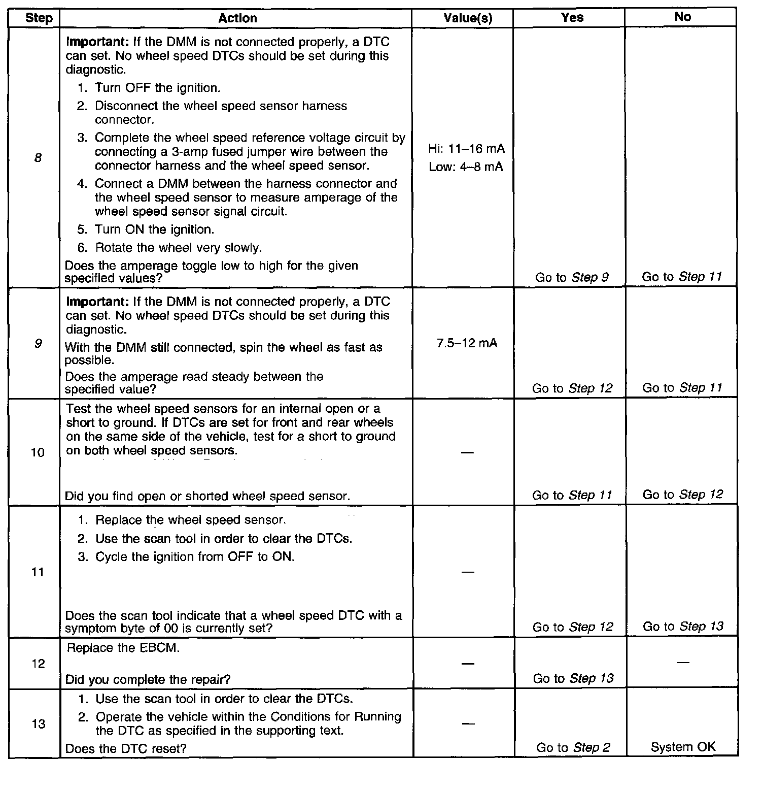 9. Measures the average amperage output of the wheel speed sensor signal in order to detect an erratic signal.