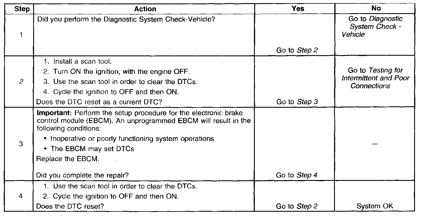 ^ The electronic brake control module (EBCM) automatically clears the history DTC when a current DTC is not detected in 100 consecutive drive cycles.