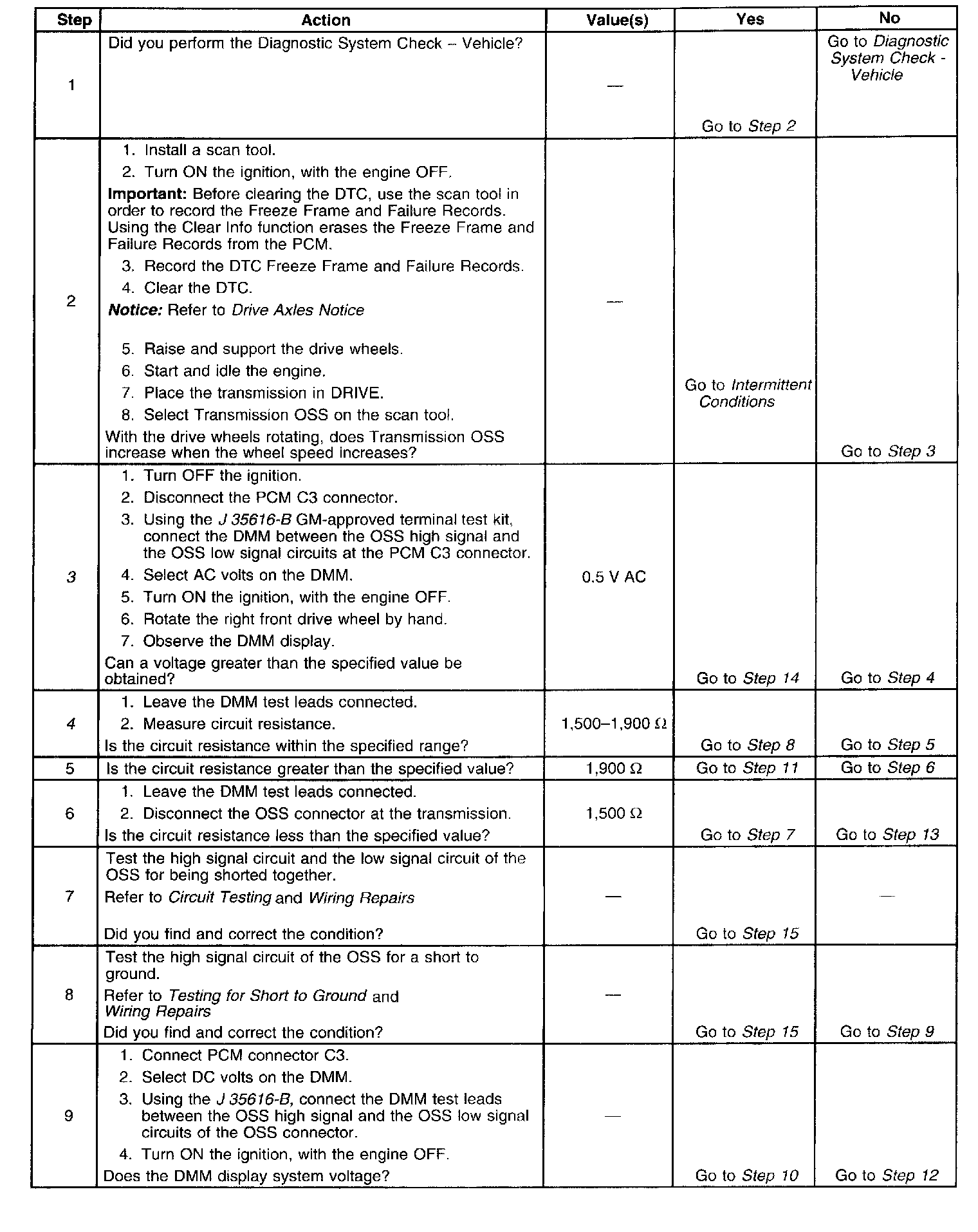 3. This step tests the ability of the OSS to produce an AC voltage. This step also verifies the integrity of the wiring to the PCM.