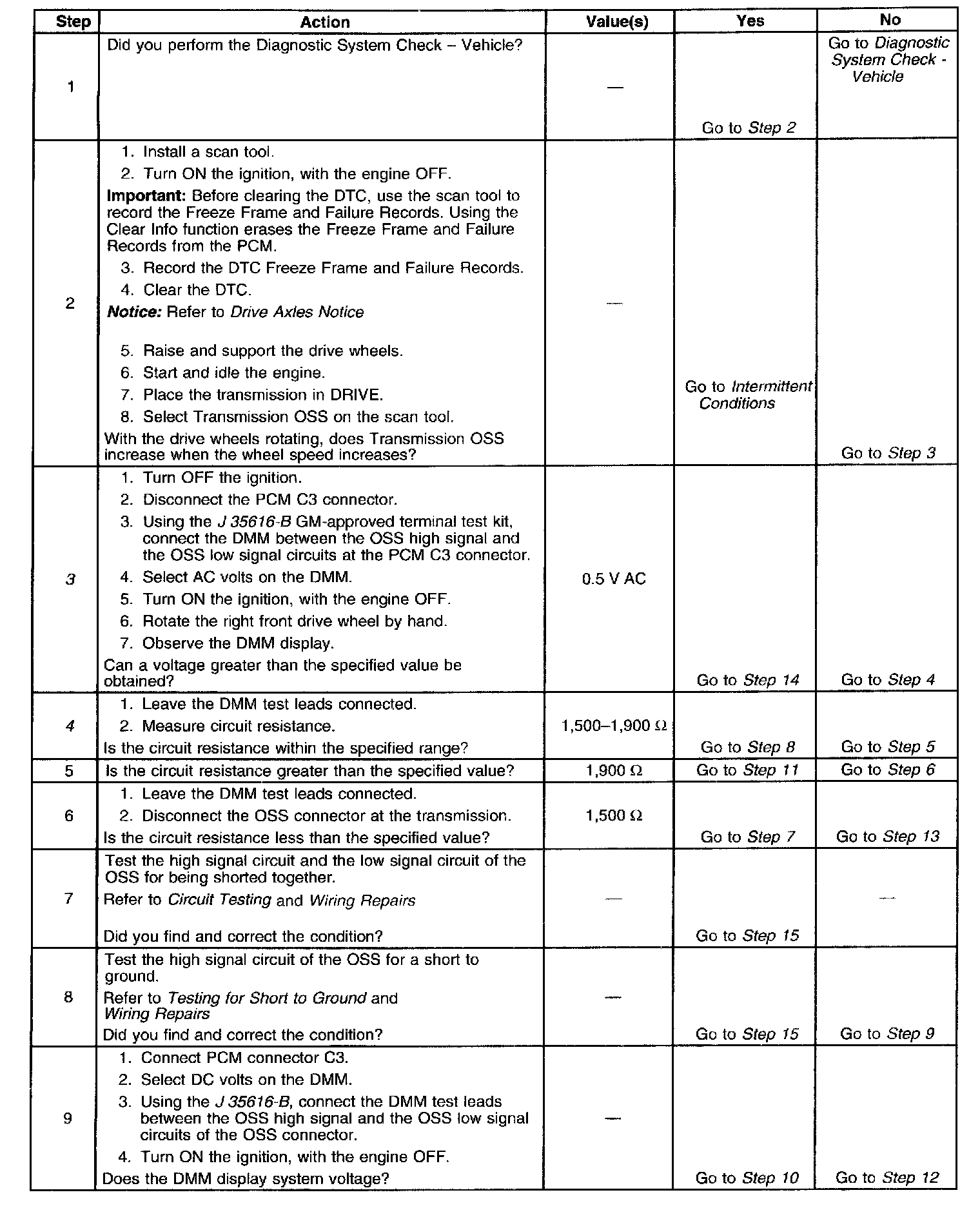 3. This step tests the ability of the OSS to produce an AC voltage. This step also verifies the integrity of the wiring to the PCM.