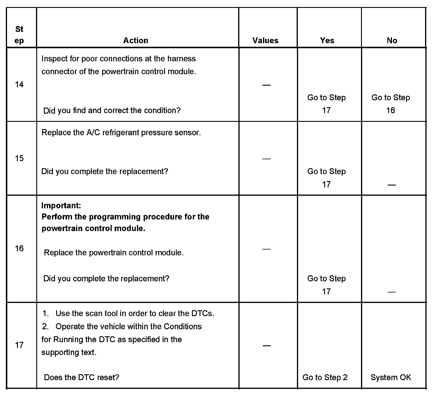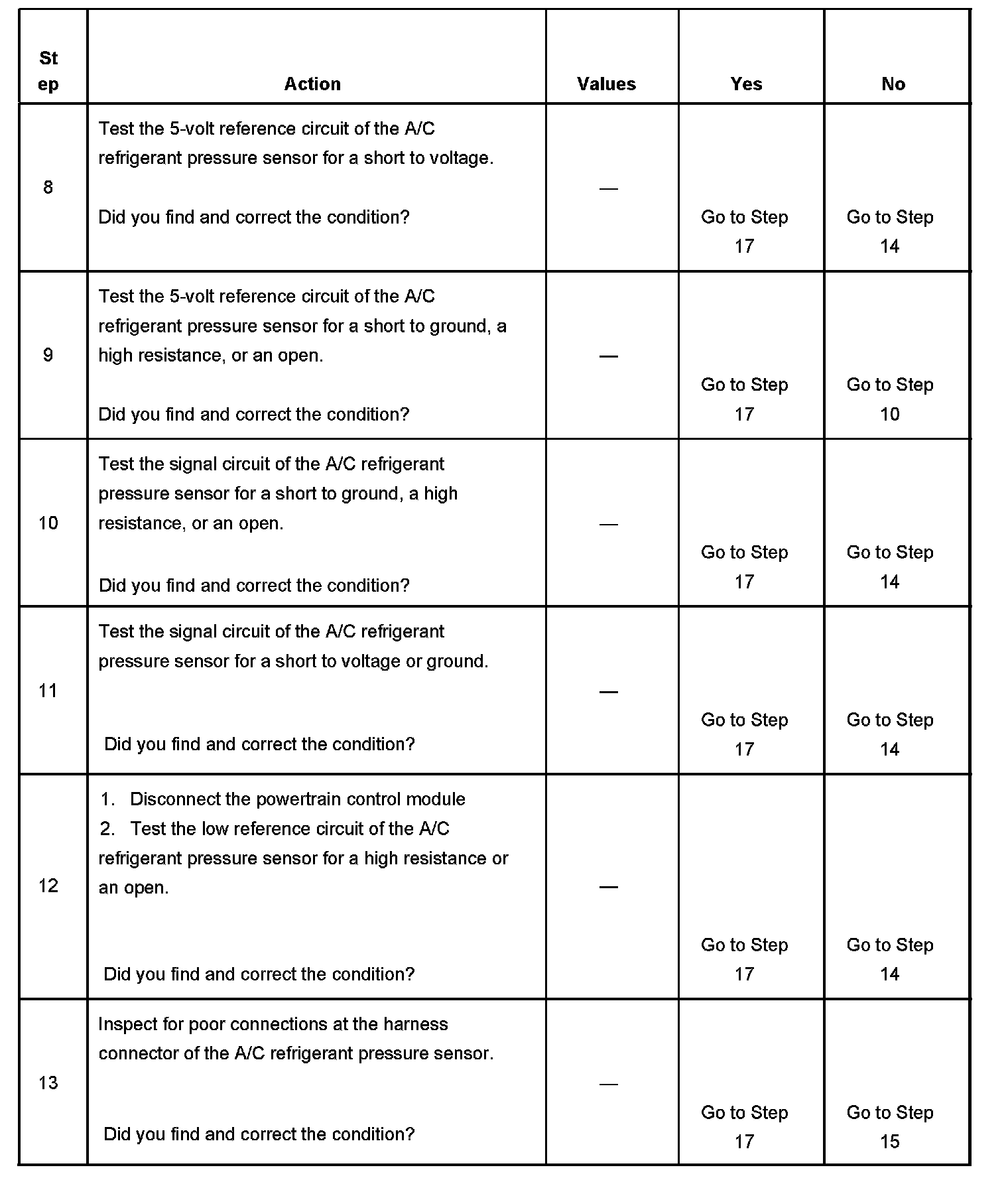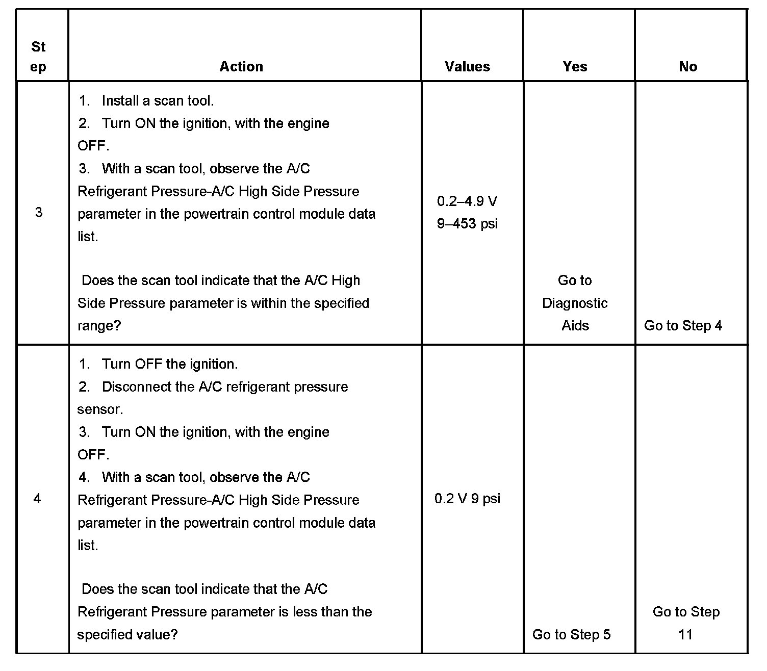 - The PCM detects that the A/C pressure is 9 psi or less (0.20 volts).