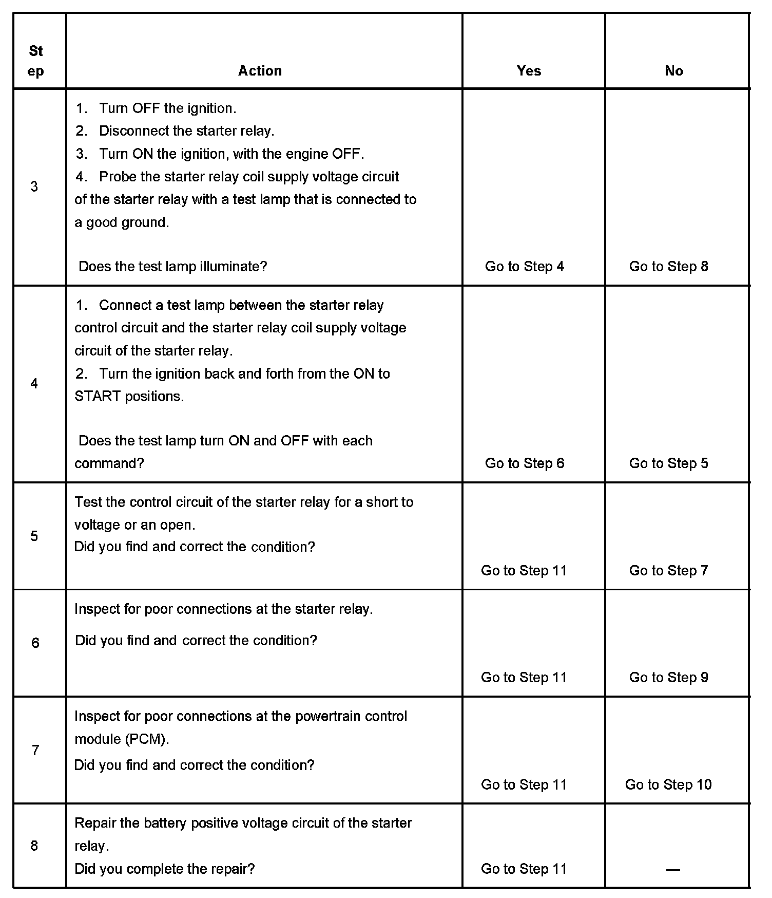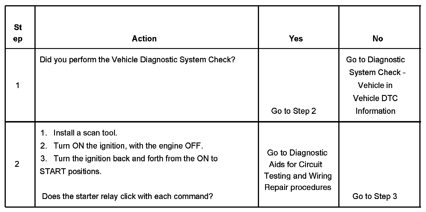 - The PCM detects an improper voltage level on the output circuit that controls the starter relay.