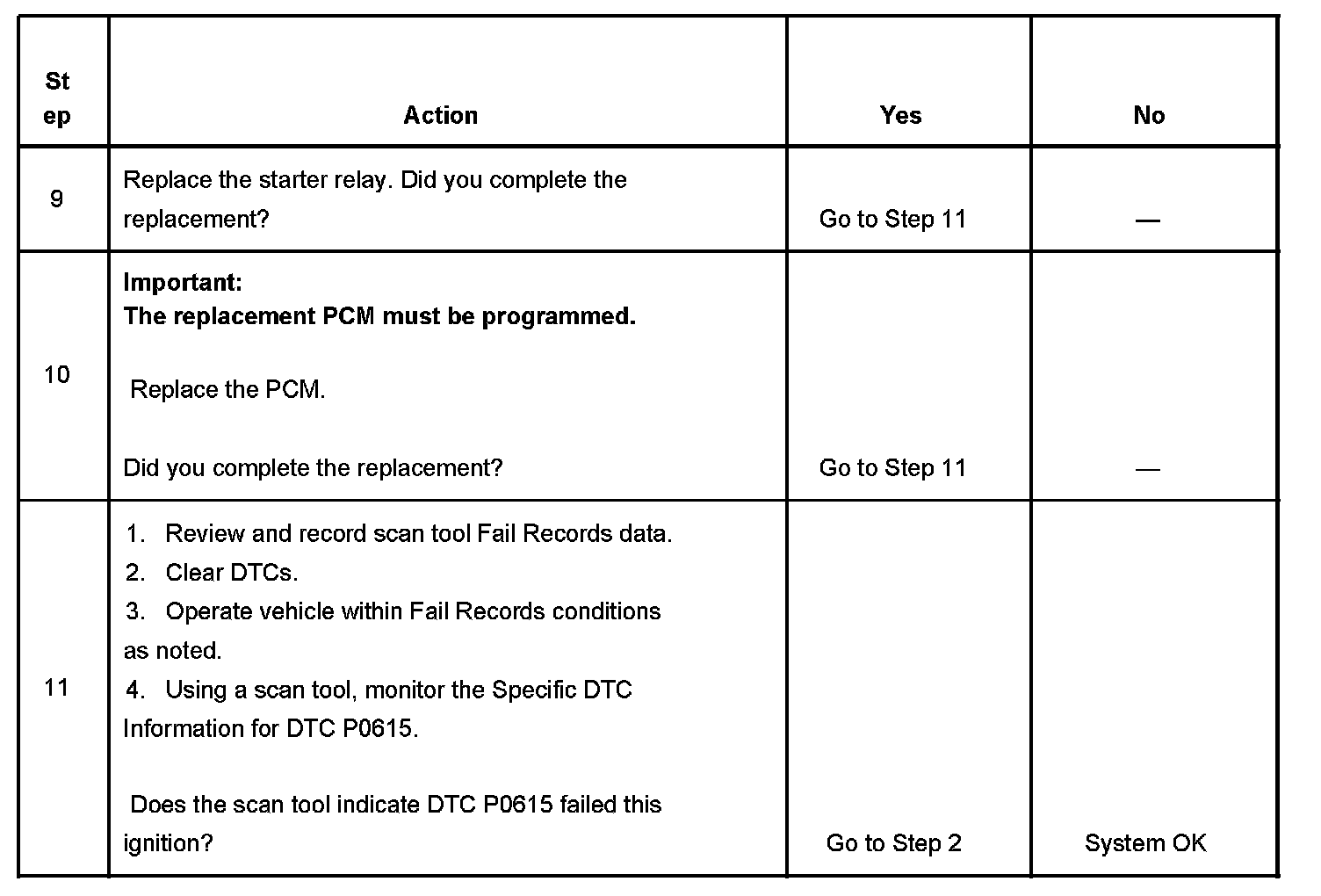 The powertrain control module (PCM) supplies a ground path for the starter relay when start enable has been requested. The PCM monitors this circuit for conditions that are incorrect for the commanded state. If the PCM detects an improper circuit condition, starter relay DTC P0615 will set.