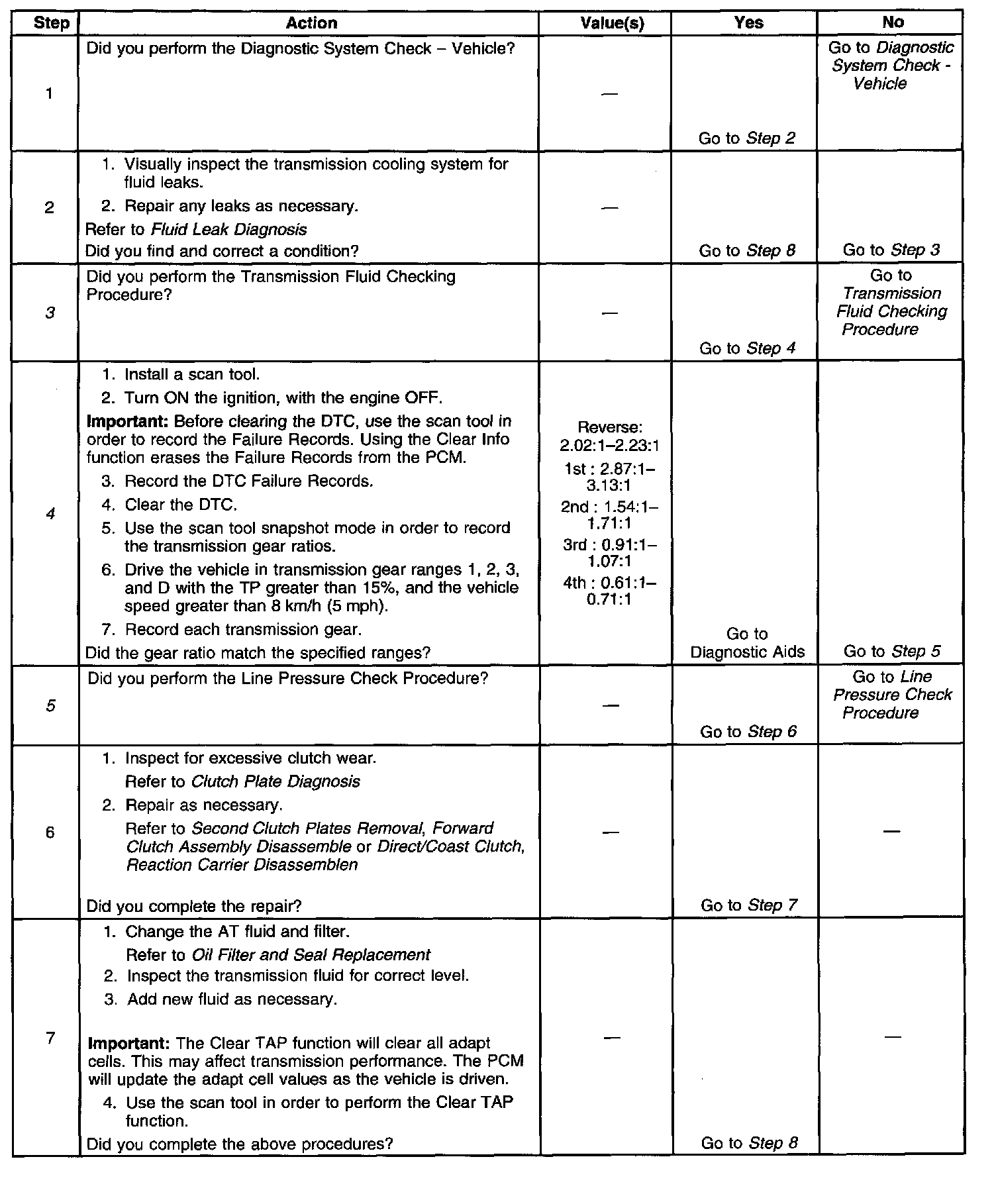3. This step tests for low fluid level, which may cause slipping, and result in an incorrect gear ratio.