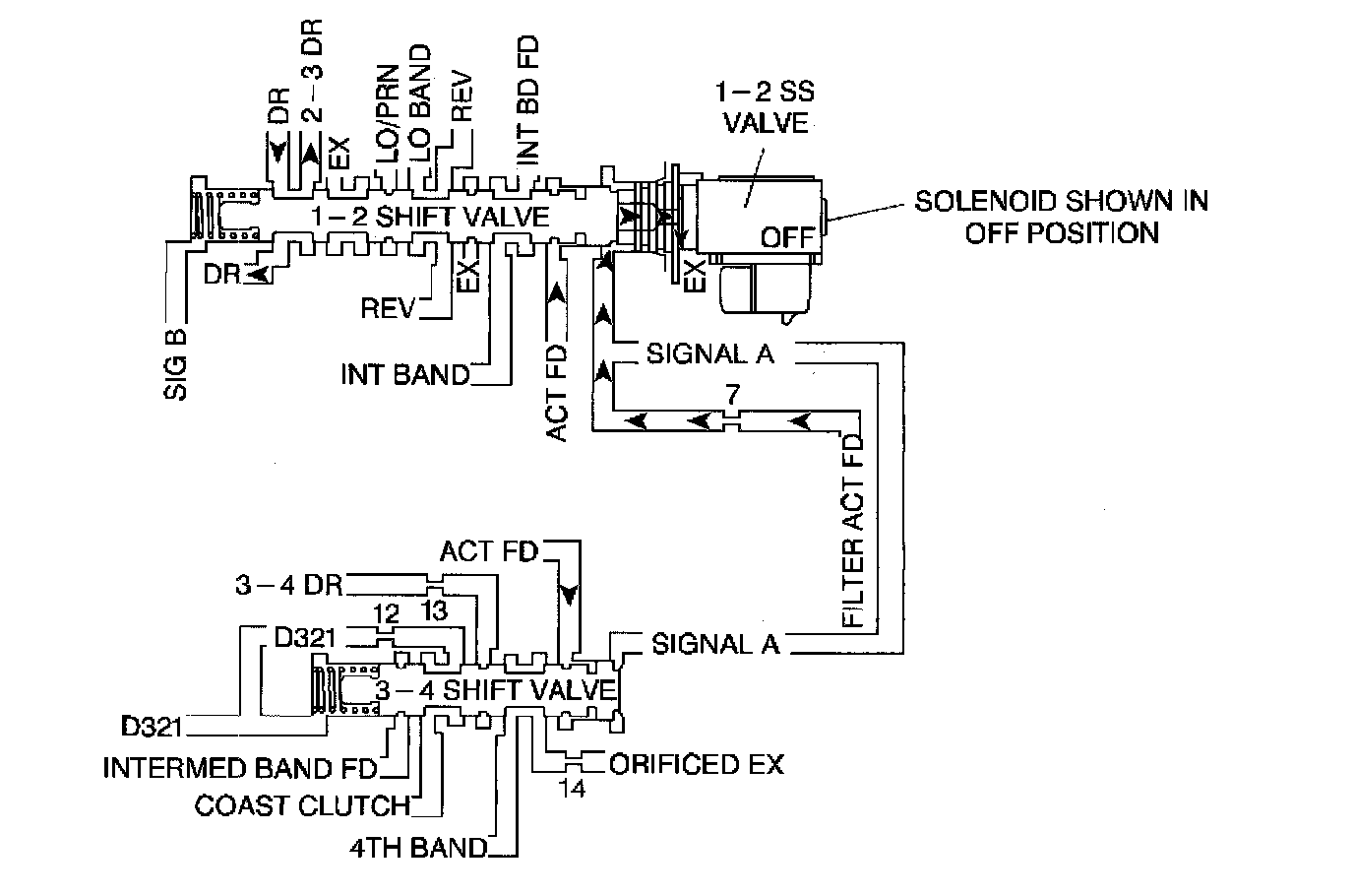 4. This step tests for a mechanical or hydraulic condition causing the 1-2 SS valve to be stuck OFF, or the circuit to be released.