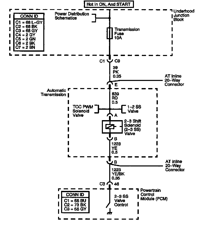 The 2-3 Shift Solenoid (SS) valve is a normally-open exhaust valve that, in conjunction with the 1-2 Shift Solenoid (SS) valve, allows four different shifting combinations. The 2-3 SS valve is attached to the control valve body within the transmission.
