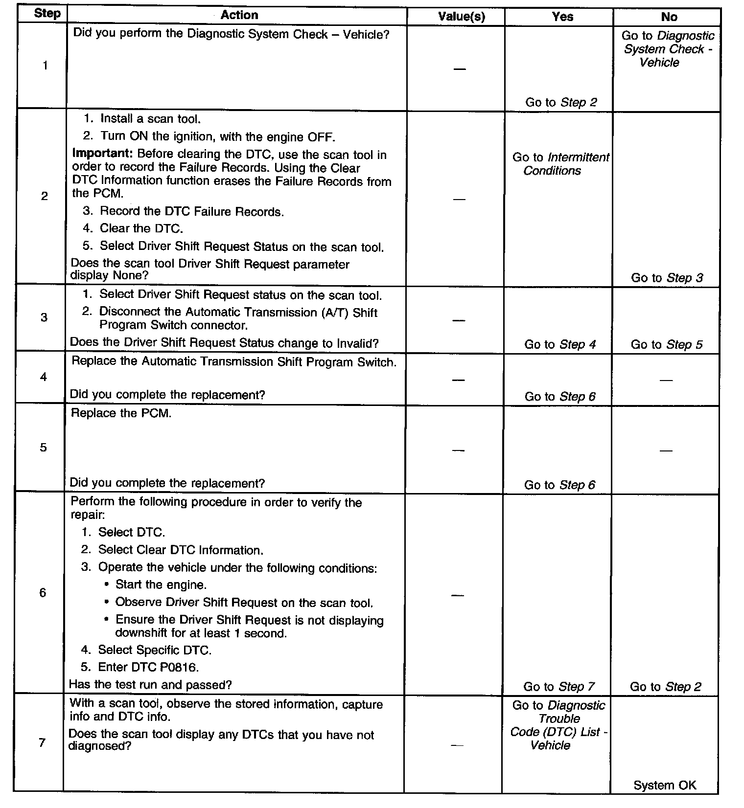 If the PCM detects the downshift circuit active for an extended period of time, then DTC P0816 sets. DTC P0816 is a type C DTC.