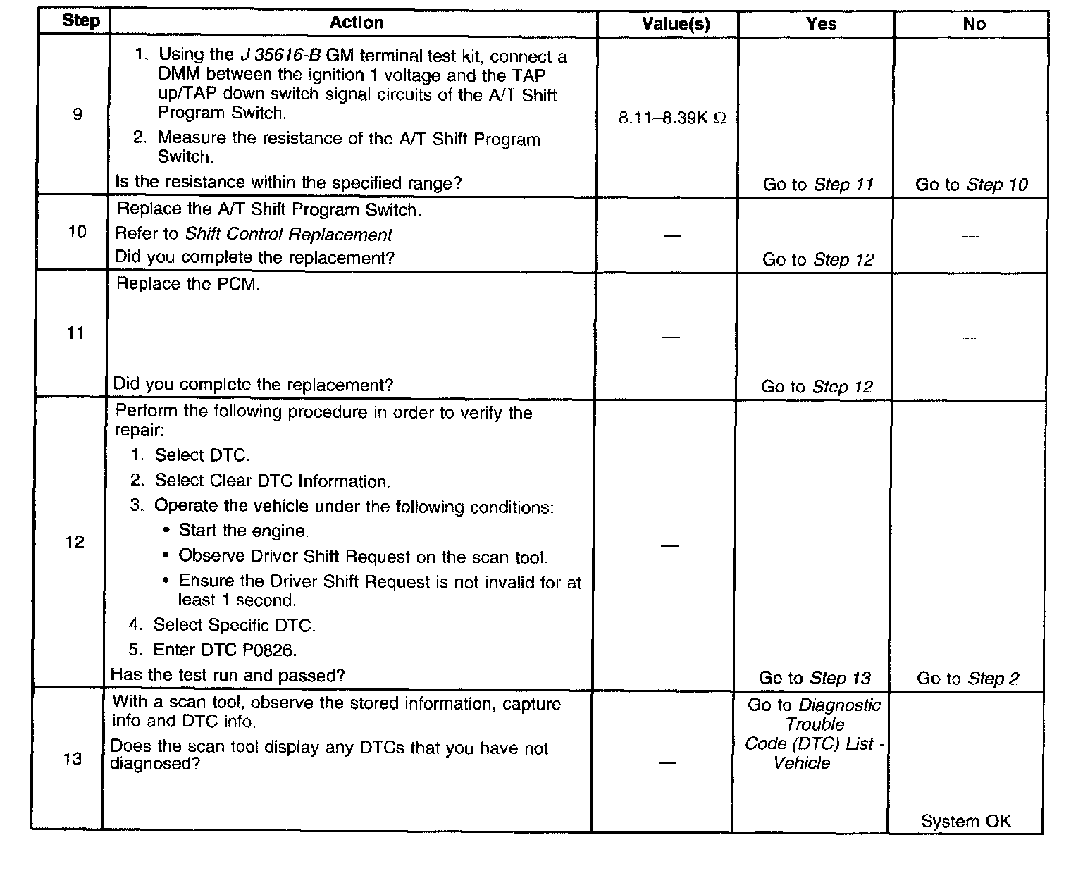 DTC P0826 (2.2L and 3.5L)