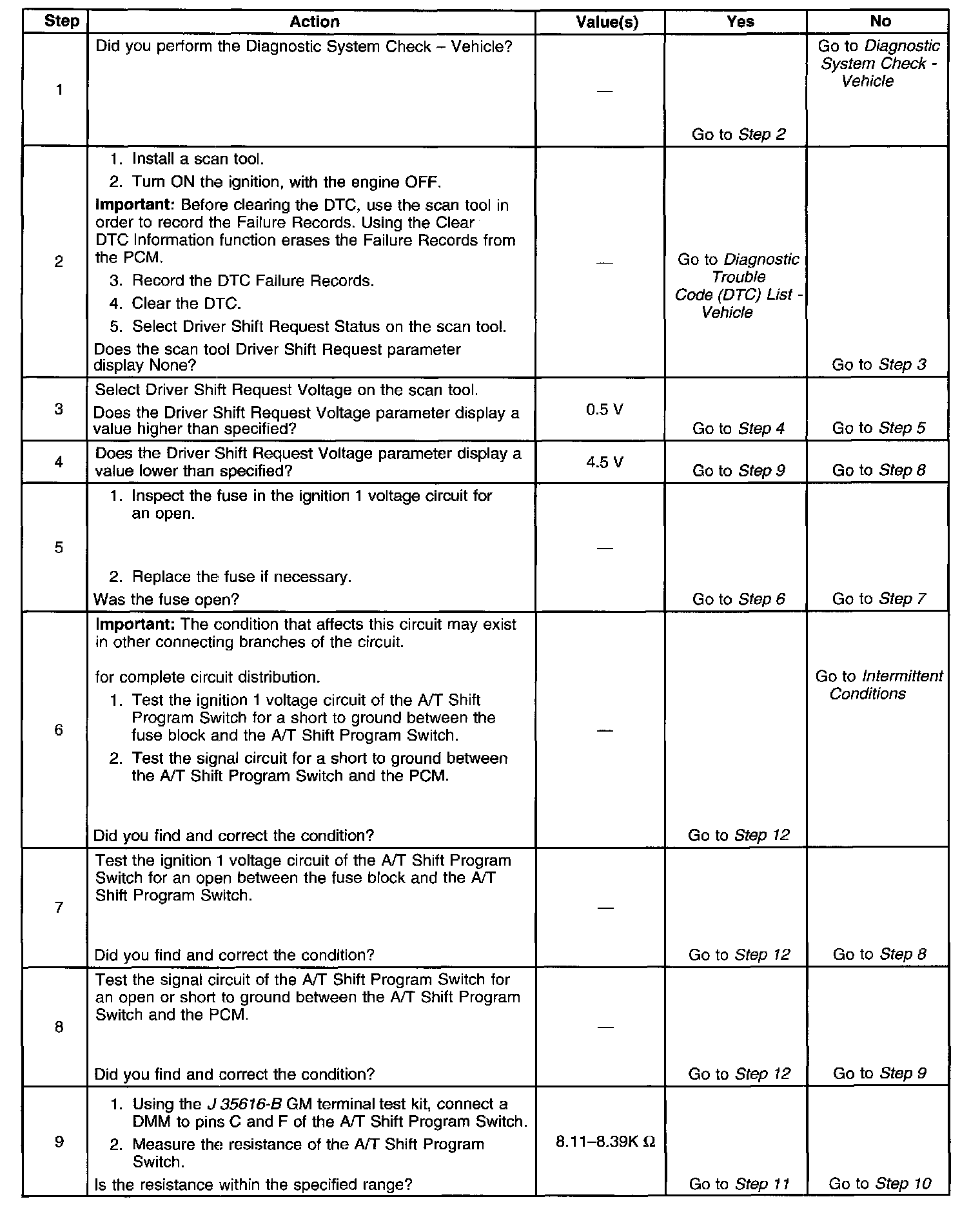 ^ The PCM does not illuminate the Malfunction Indicator Lamp (MIL).