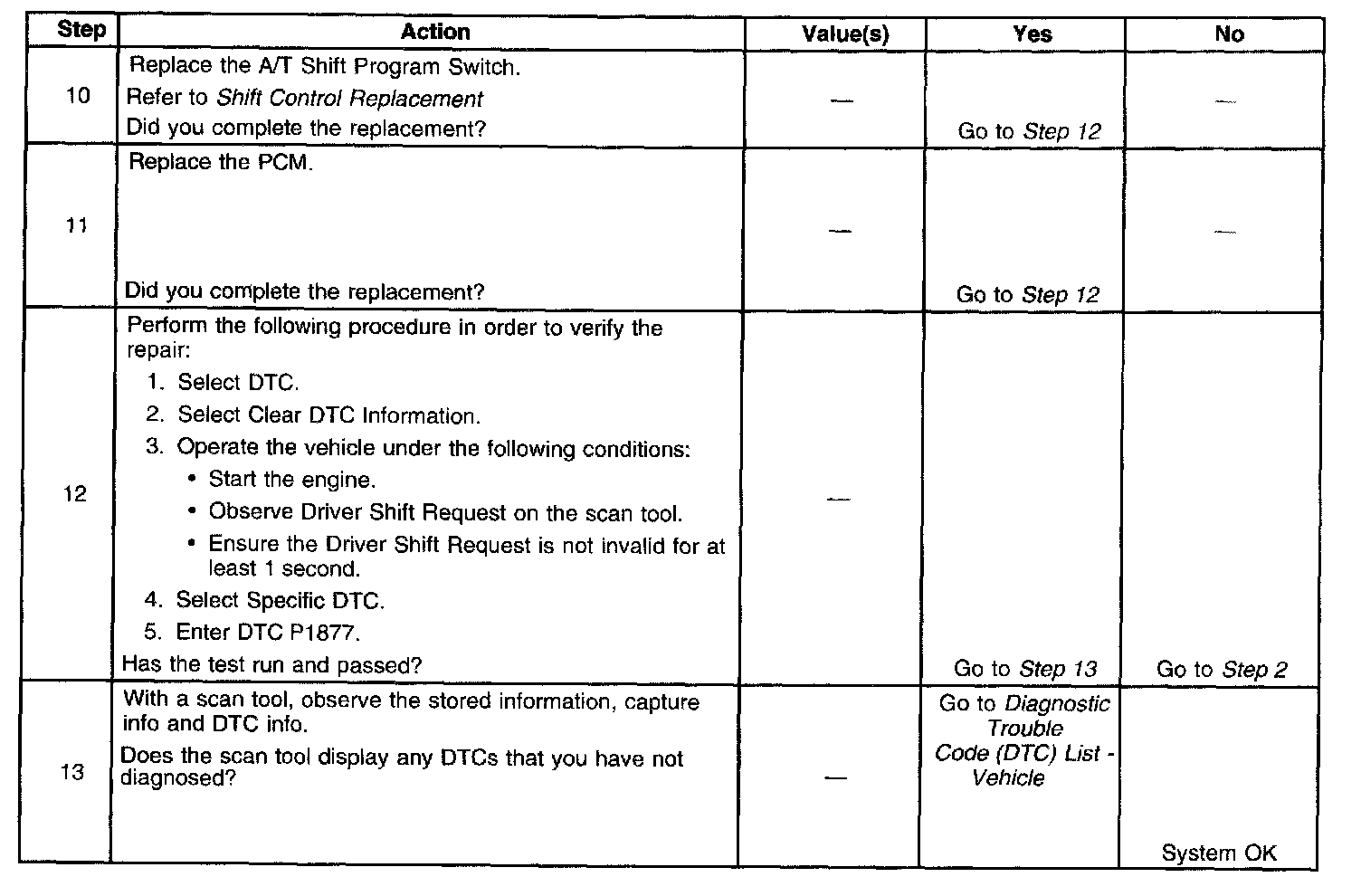 ^ The PCM stores DTC P1877 in PCM history.