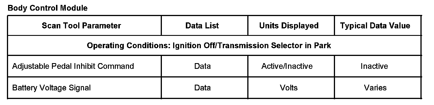 Body Control Module Scan Tool Data List: