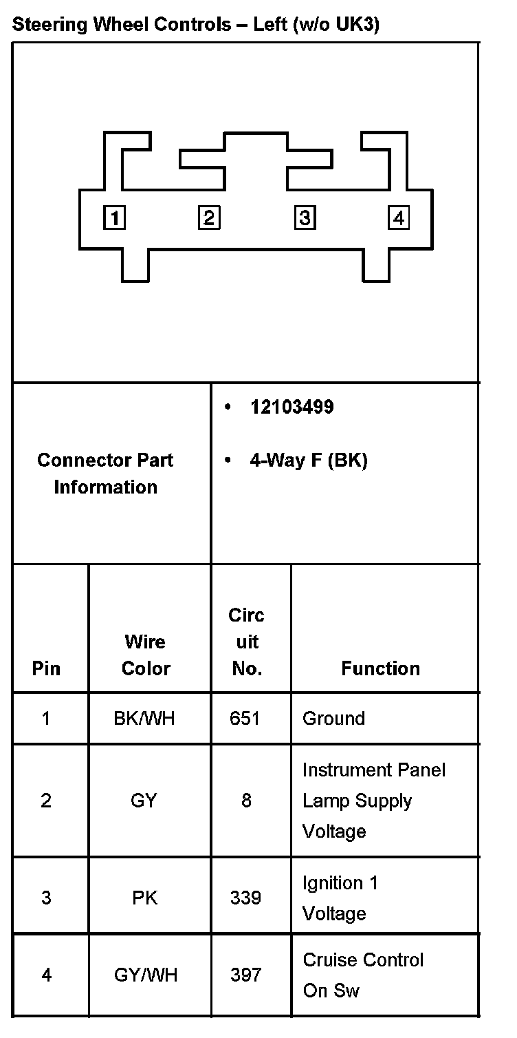 Steering Wheel Controls - Left (With RPO Code UK3):