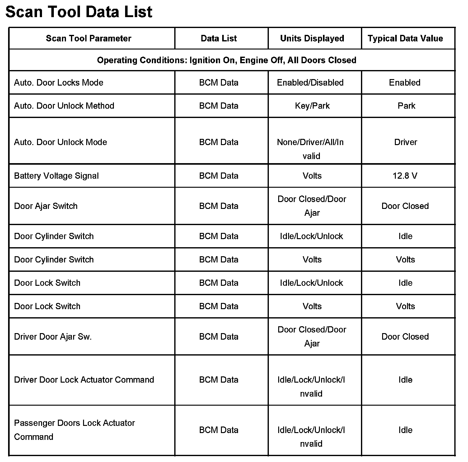 Scan Tool Data List:
