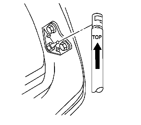 Important: The top of the liftgate strut is marked with the word TOP and an up-arrow.